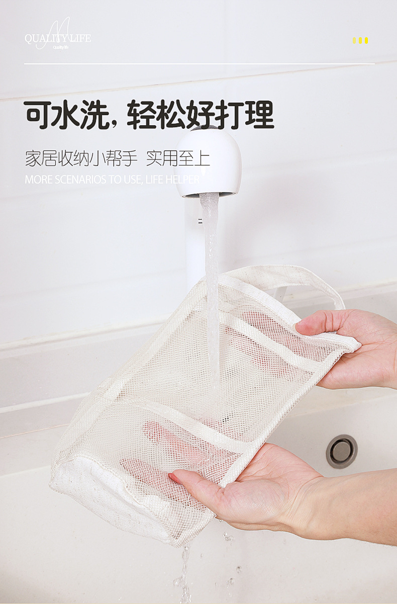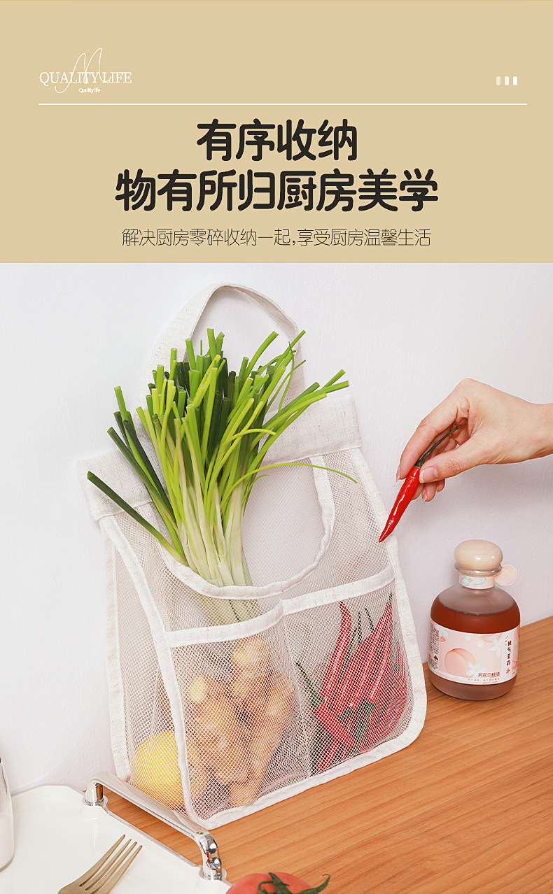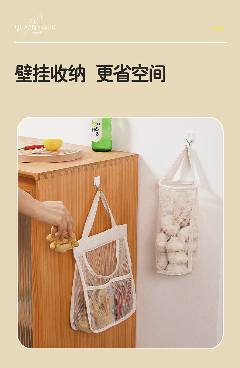 메쉬 통기성 생강 및 마늘 벽걸이 저장 가방 면화 및 리넨 두꺼운 메쉬 가방 대용량 주방 과일 및 야채 수분 방지 교수형 가방스토어 가기