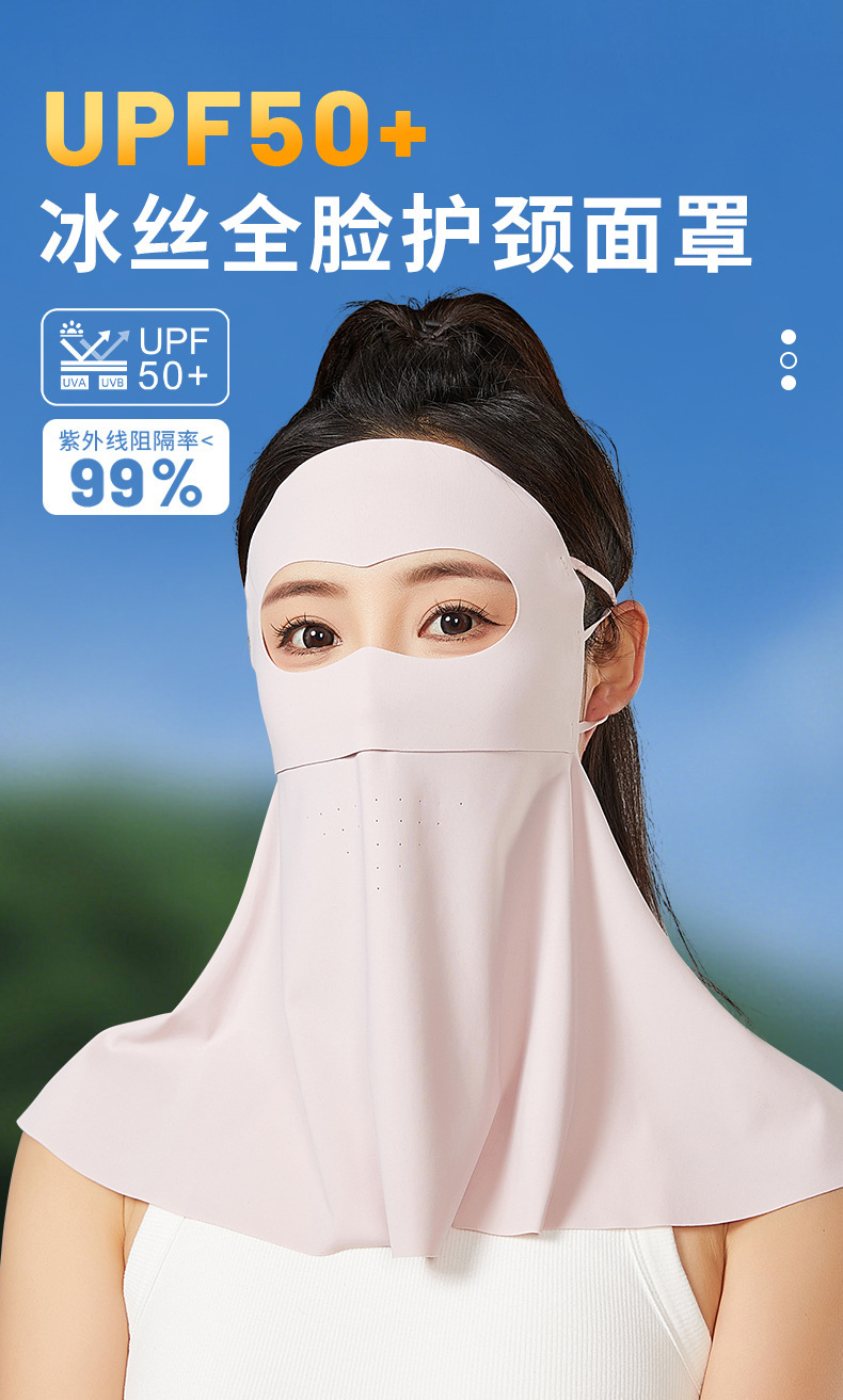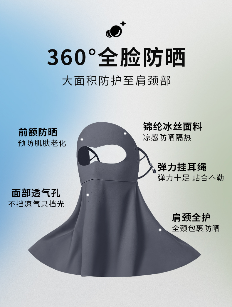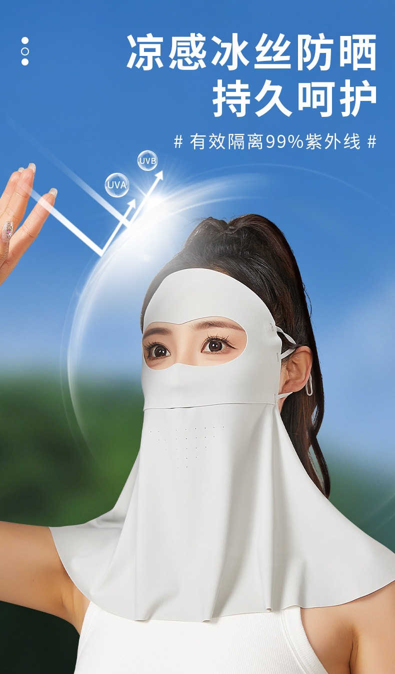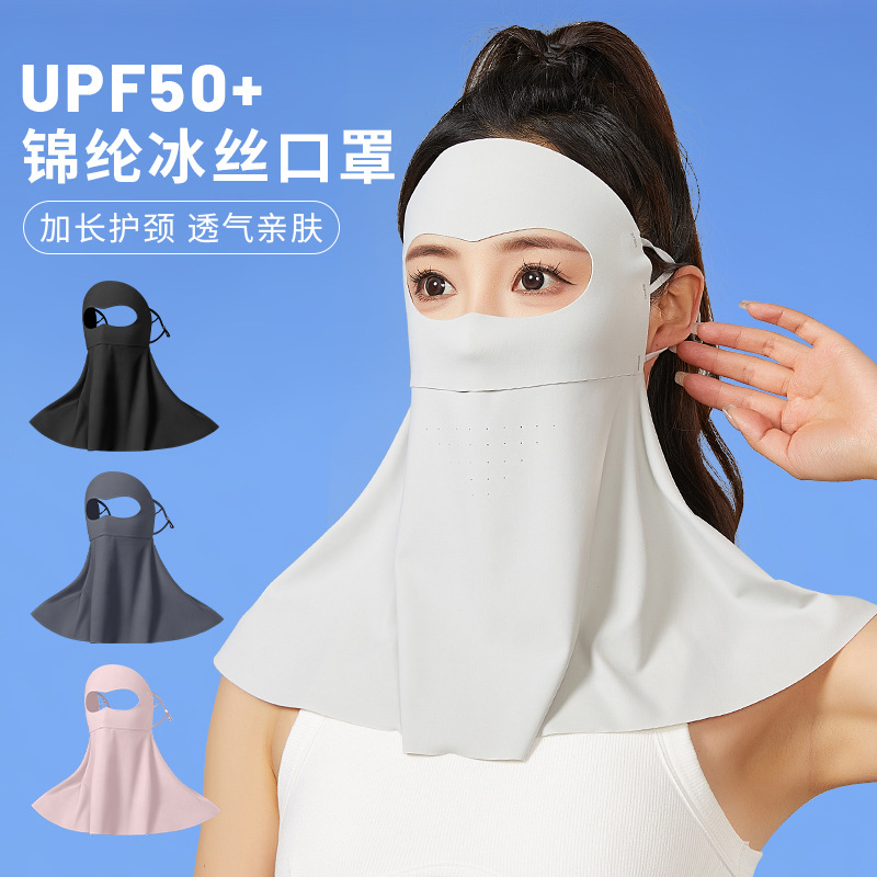 2025 새로운 선 스크린 마스크 아이 앵글 쿨 페이스 마스크 UV 보호 전체 목 승마 아이스 실크 페이스 마스크