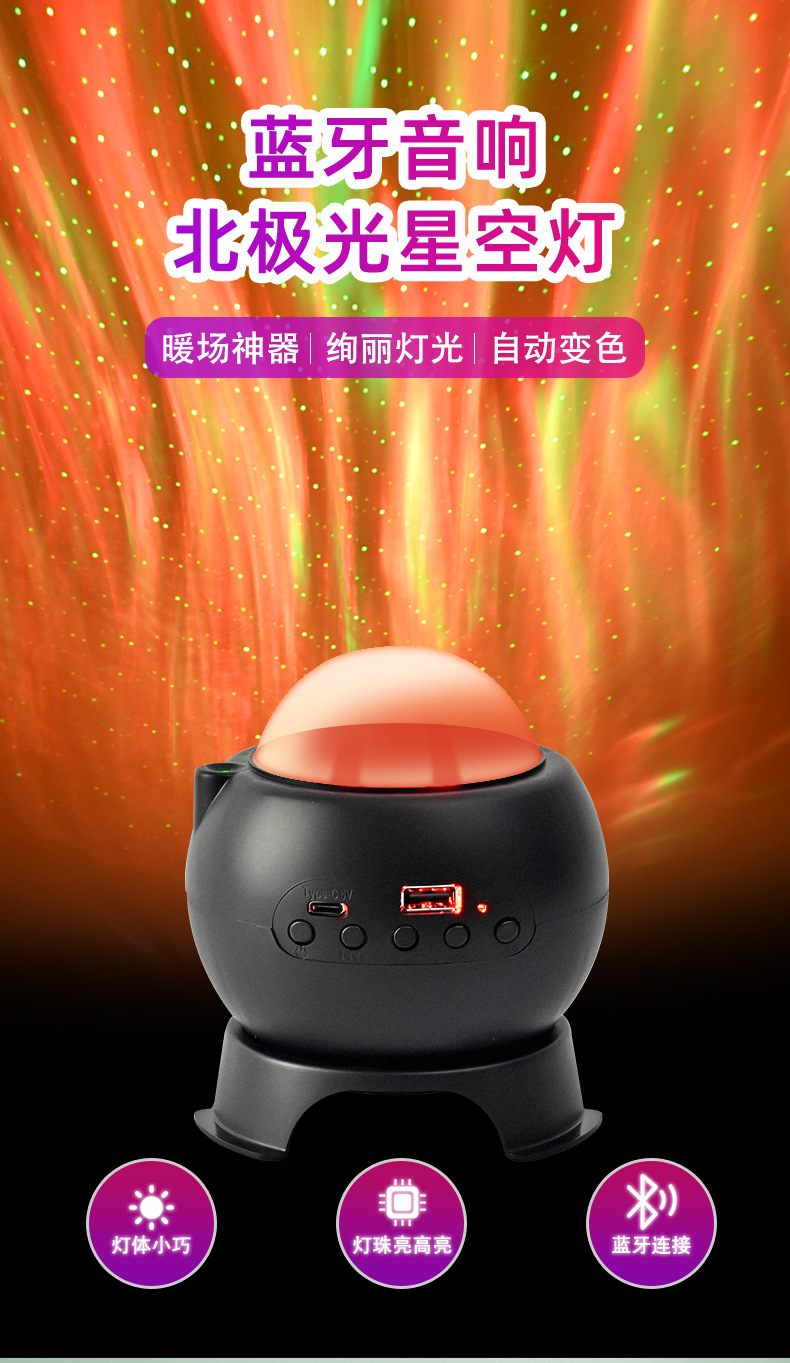 새로운 오로라 물 파문 블루투스 스피커 침실 스타 프로젝션 빛 야광 생일 선물