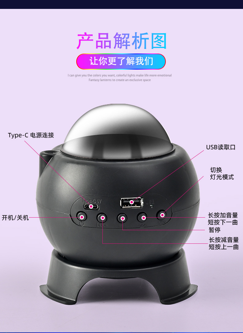 새로운 오로라 물 파문 블루투스 스피커 침실 스타 프로젝션 빛 야광 생일 선물스토어 가기