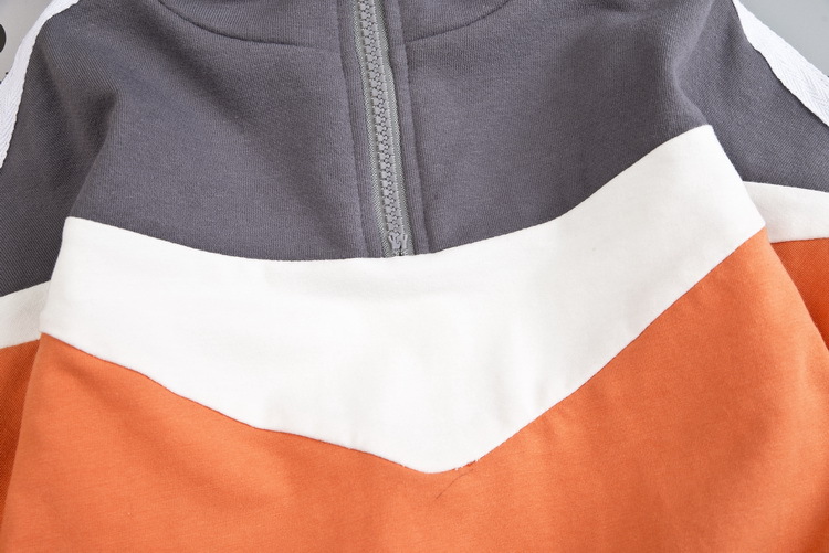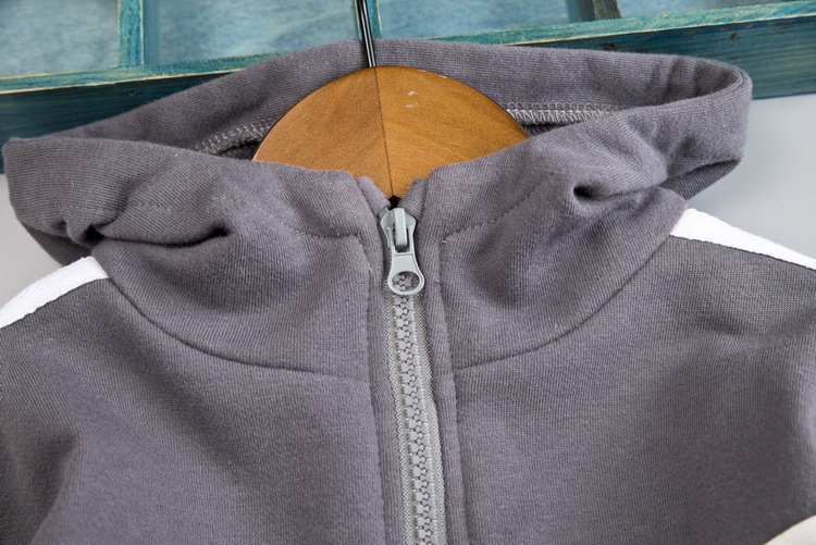 소년의 봄과 가을 새로운 세트 아동복 후드 긴 소매 스웨터 바느질 지퍼 풀오버 바지 두 조각