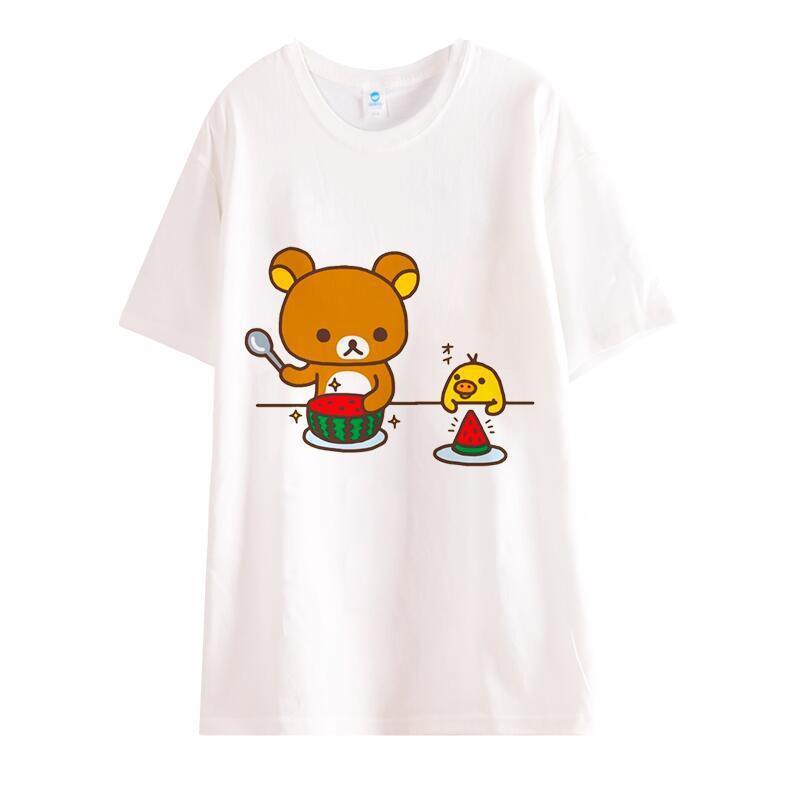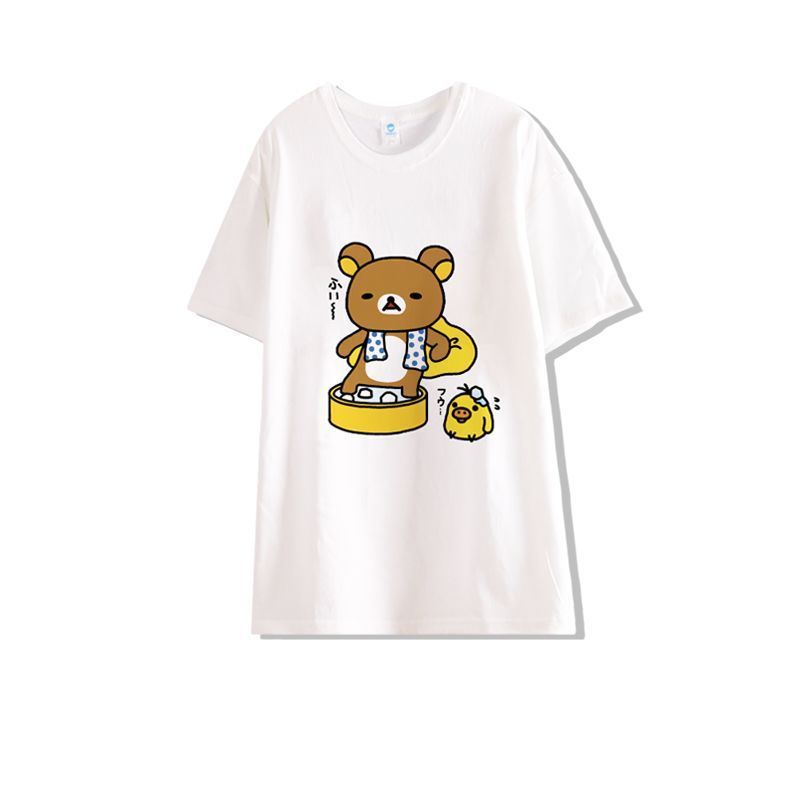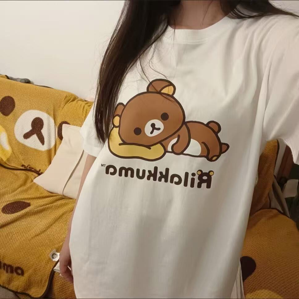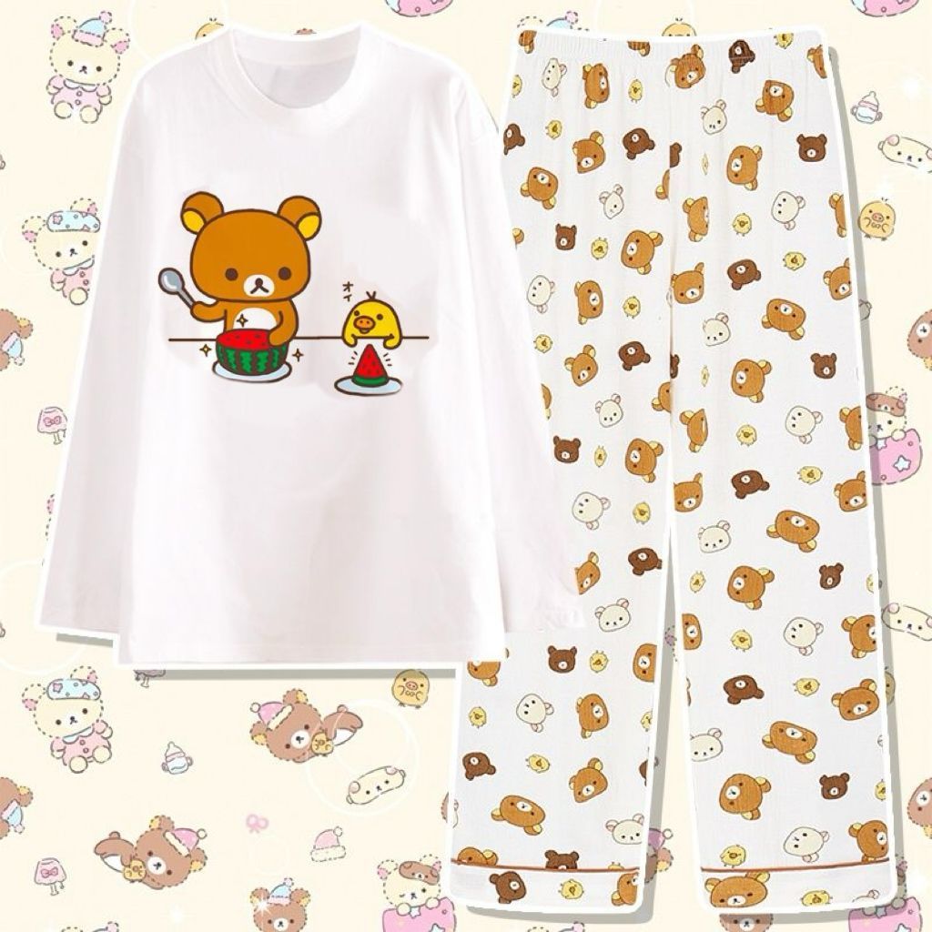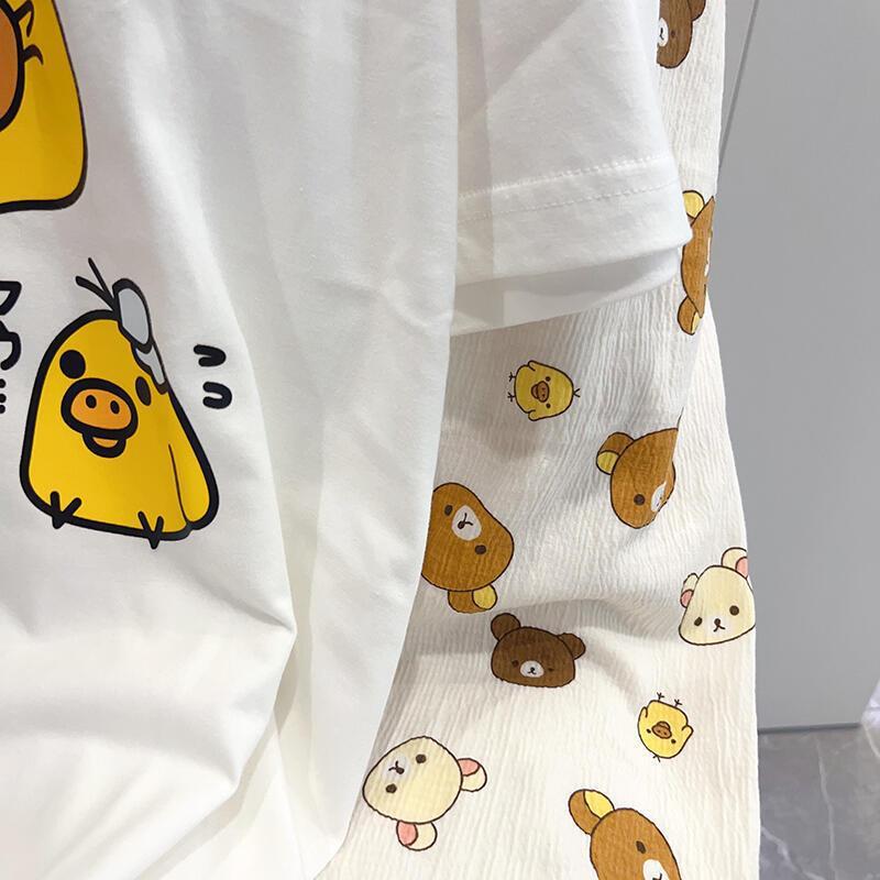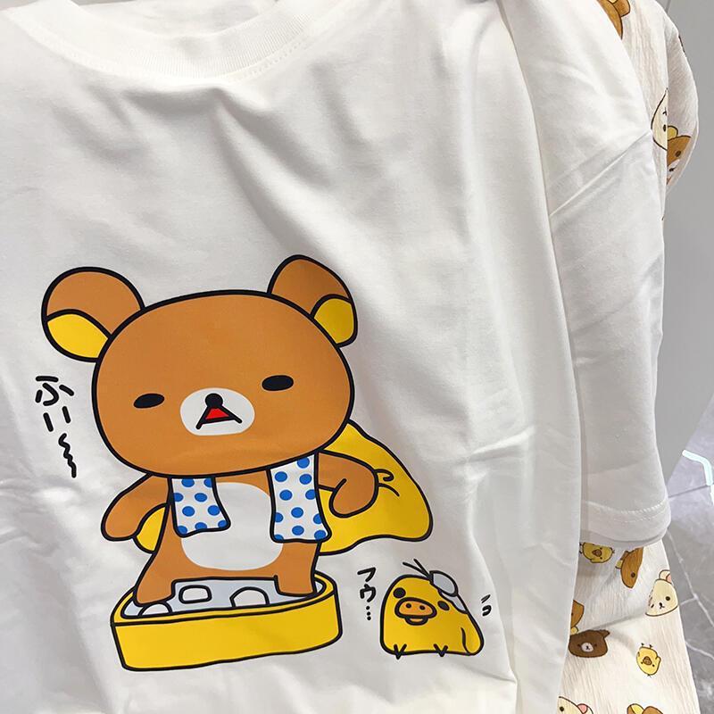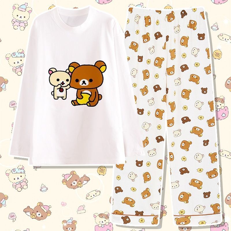 순면 rilakkuma 휴식 곰 잠옷 봄과 가을 여성 반팔 바지 귀여운 휴식 곰 홈 옷 여름스토어 가기