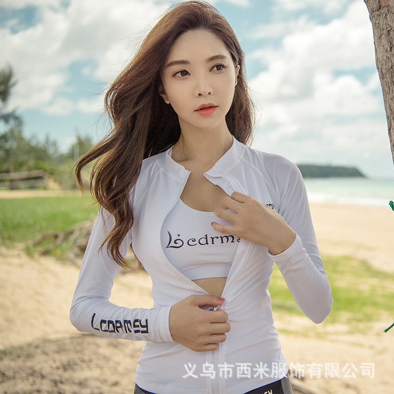 한국 LC 새로운 도착 다이빙 세트 여자 분할 긴 소매 지퍼 선 스크린 세트 빠른 건조 서핑 스쿠버 세트 남자 해파리 수영복