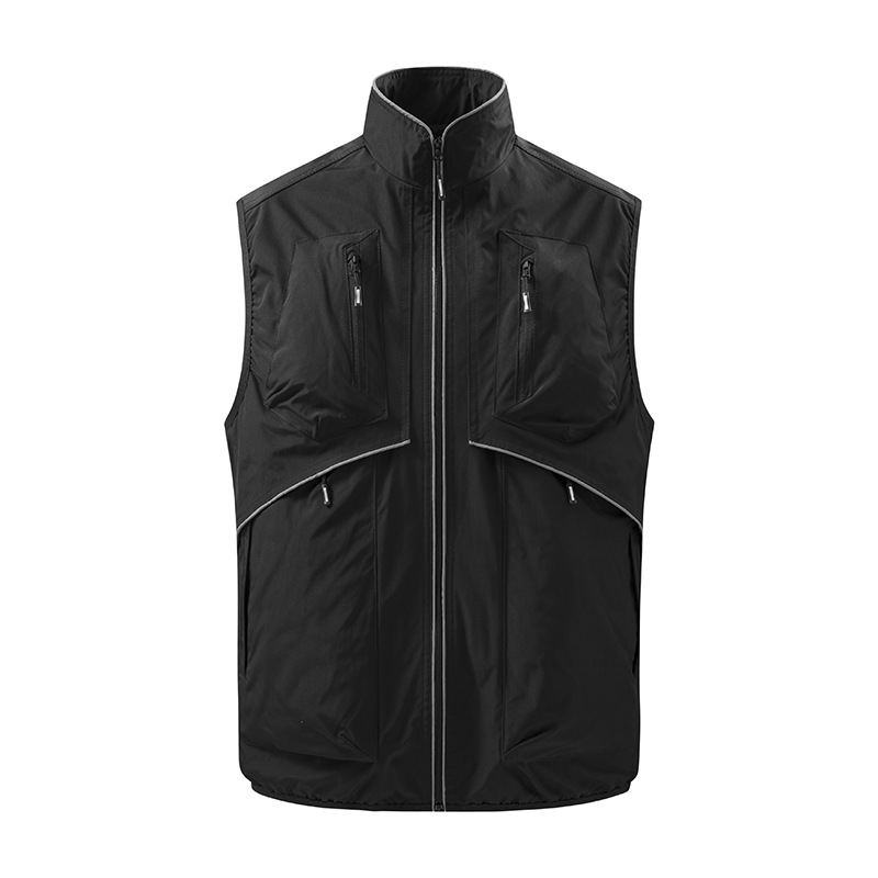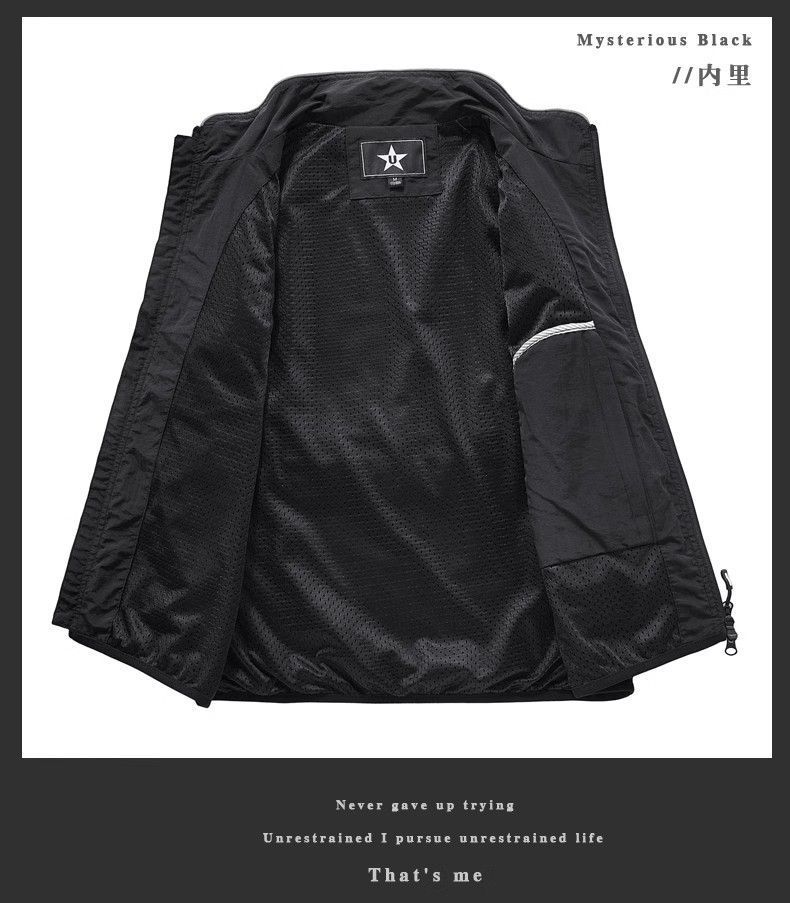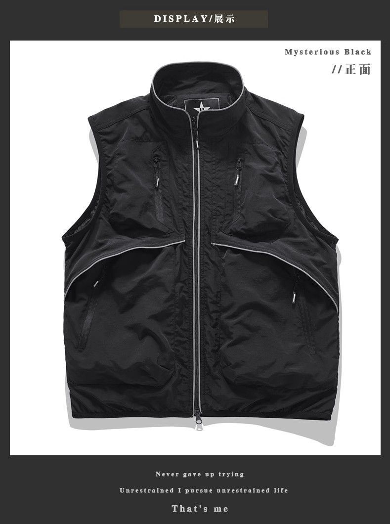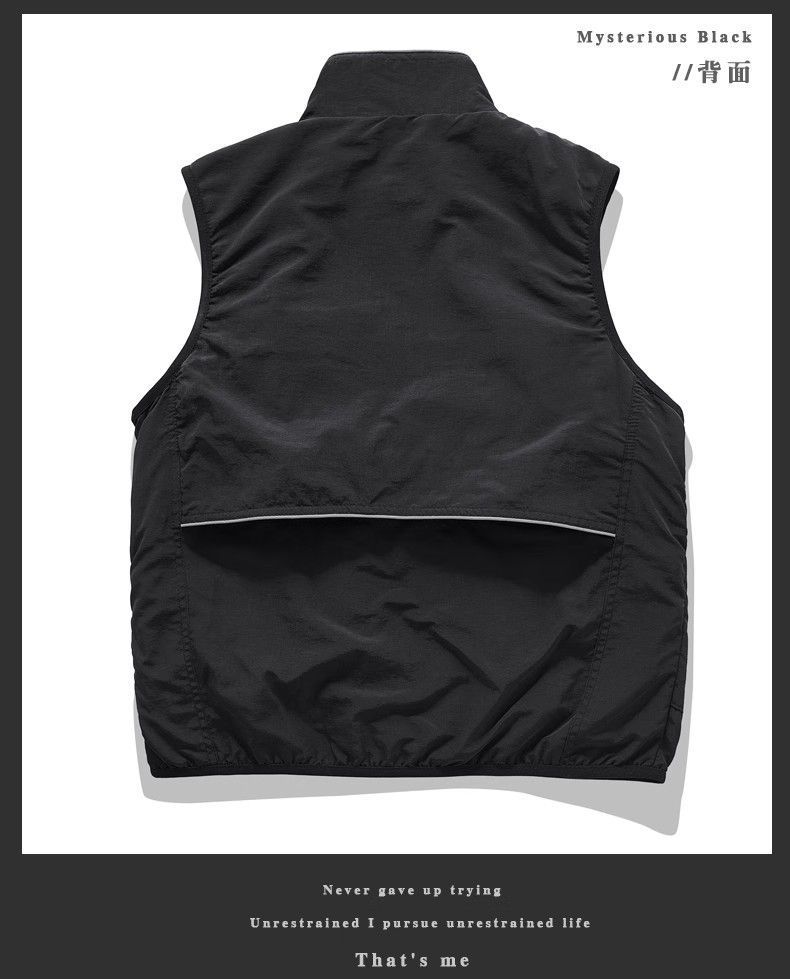 새로운 스타일의 남성용 멀티 포켓 조끼, 아웃도어 스타일의 스탠드 칼라 작업복 조끼, 루즈핏, 가볍고 통기성 좋은 민소매 조끼 재킷