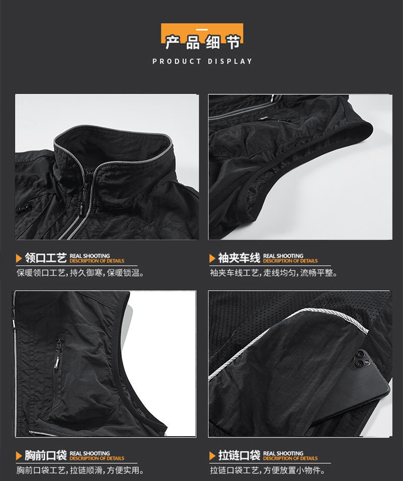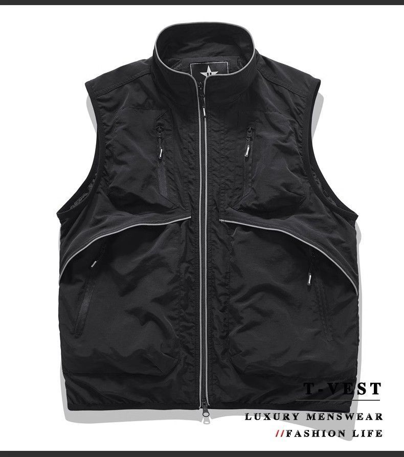 새로운 스타일의 남성용 멀티 포켓 조끼, 아웃도어 스타일의 스탠드 칼라 작업복 조끼, 루즈핏, 가볍고 통기성 좋은 민소매 조끼 재킷스토어 가기