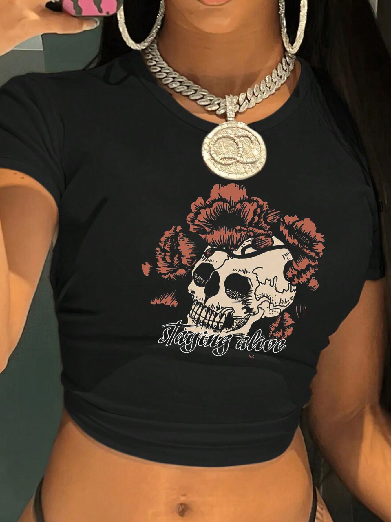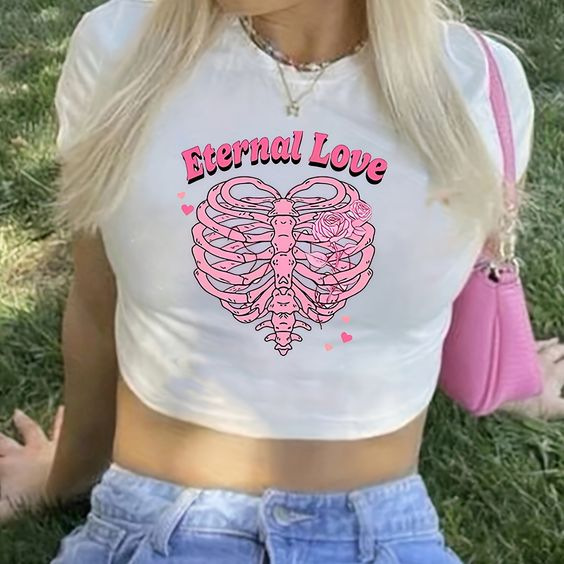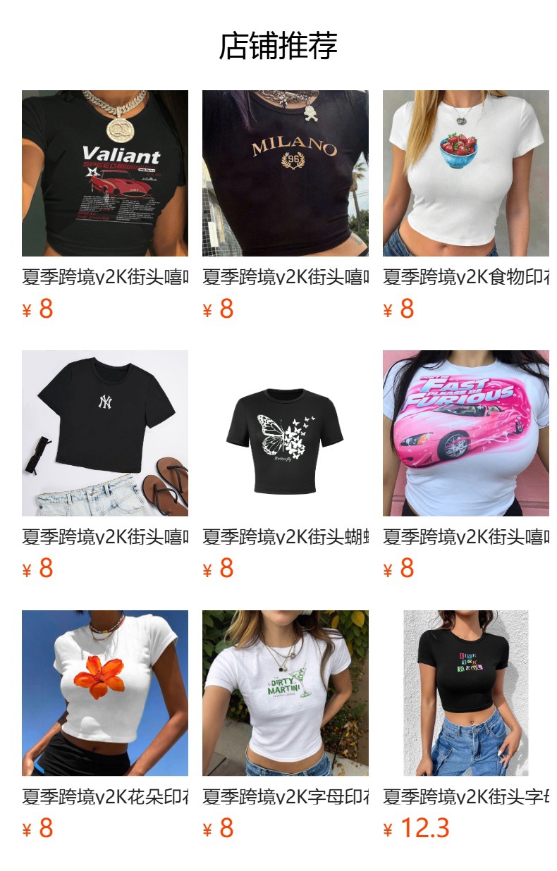 여름 크로스보더 y2k 스트리트 레터 슬림 섹시 블랙 뷰티 스타일 배꼽 노출 반팔 티셔츠 여성 티셔츠스토어 가기
