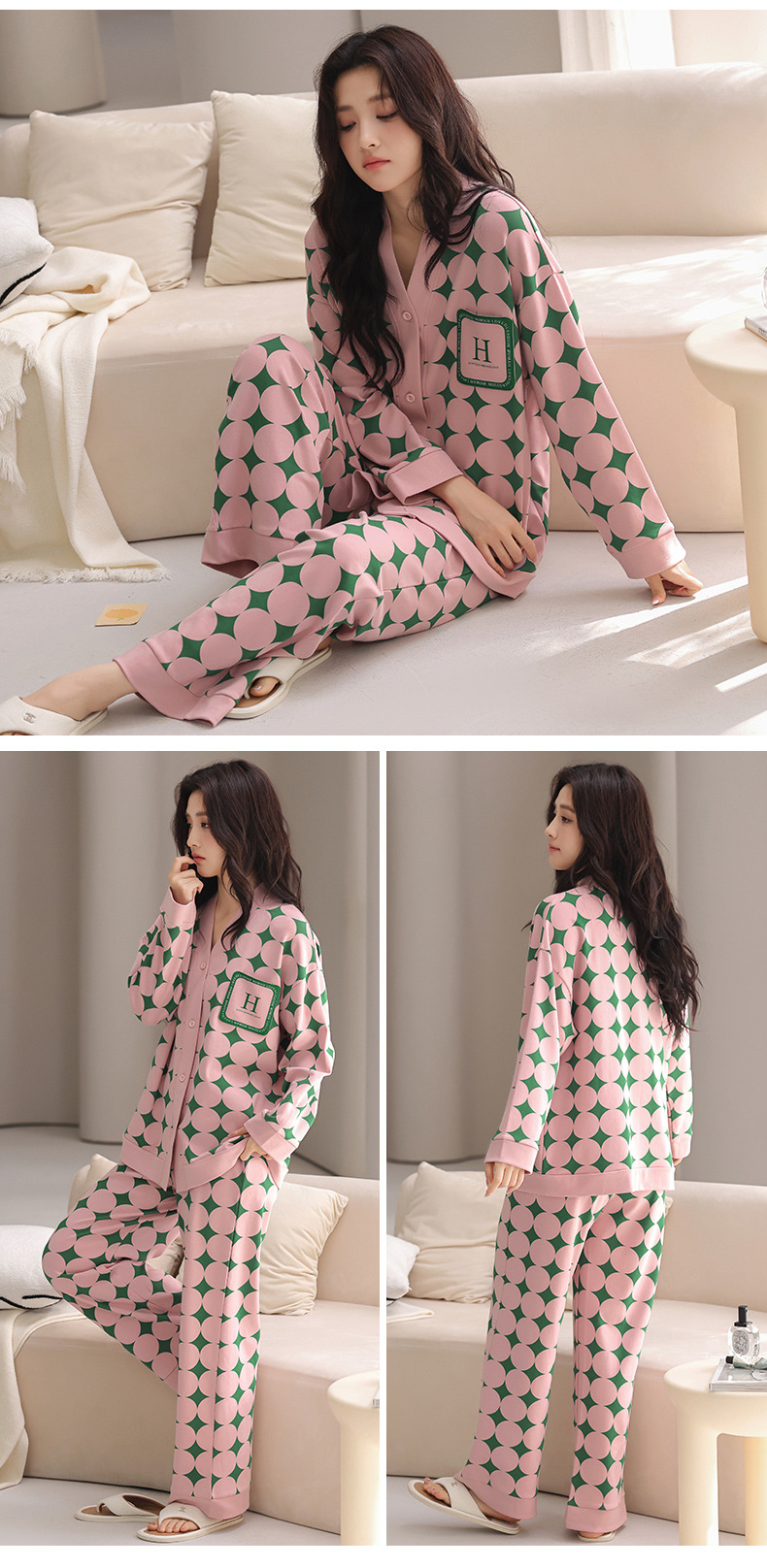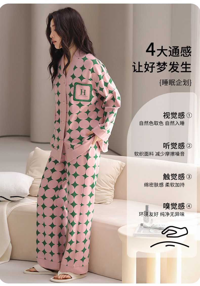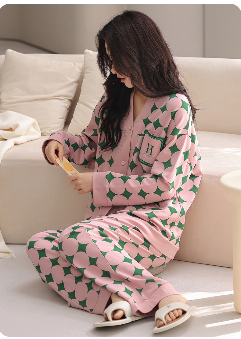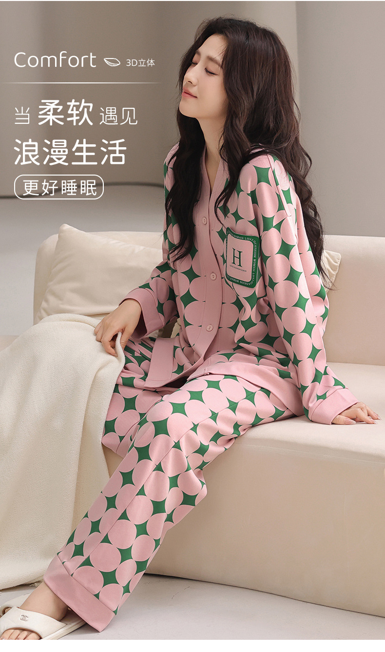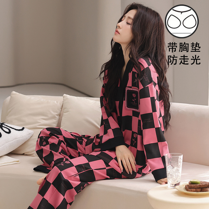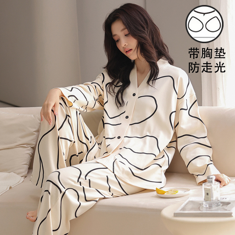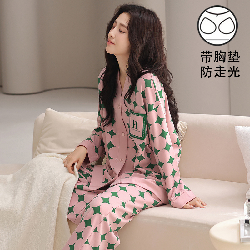 봄 긴 소매 파자마 여성의 2025 새로운 스타일 얇은 캐주얼 외부가 가슴 패드로 세트 청소년 얇은 홈 옷을 입고스토어 가기