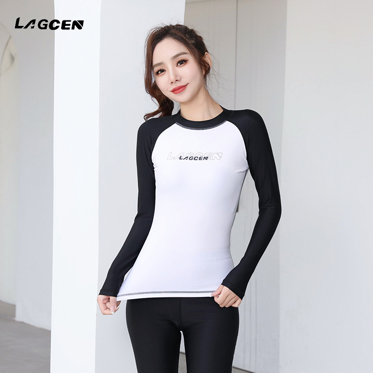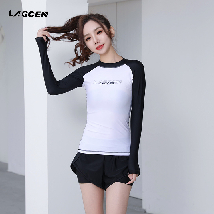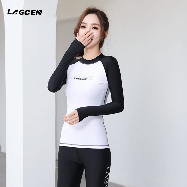 LAGCEN 새로운 분할 긴 소매 다이빙 세트 수영복 여성 캐주얼 서핑 태양 보호 빠른 건조 보수 스포츠 수영복스토어 가기