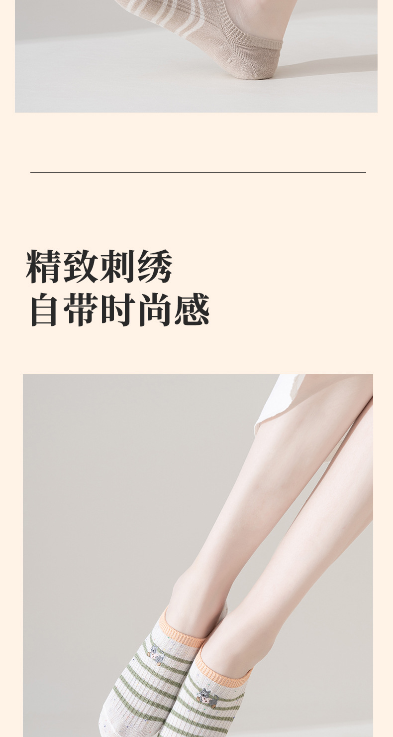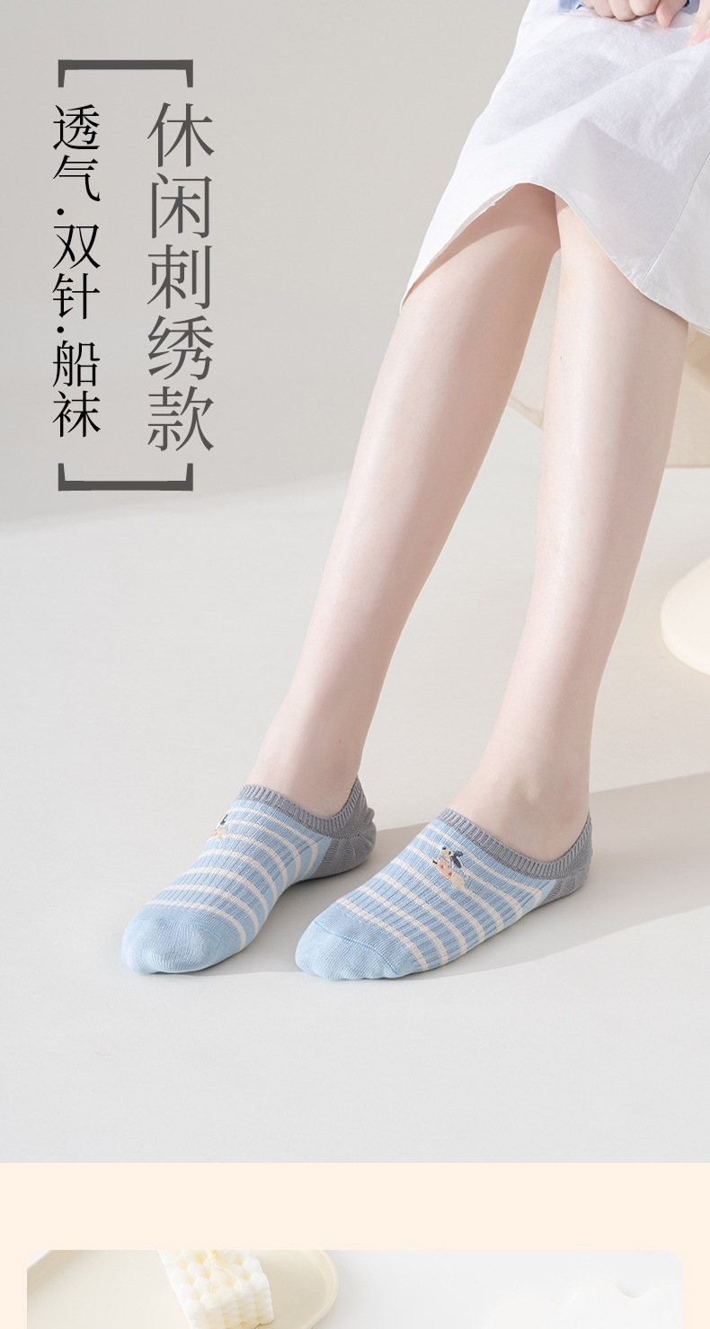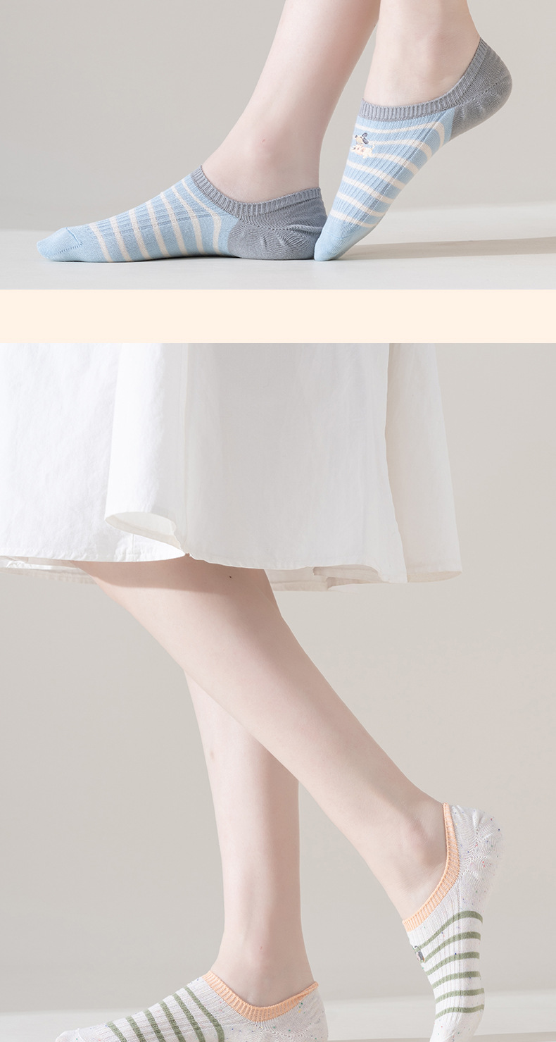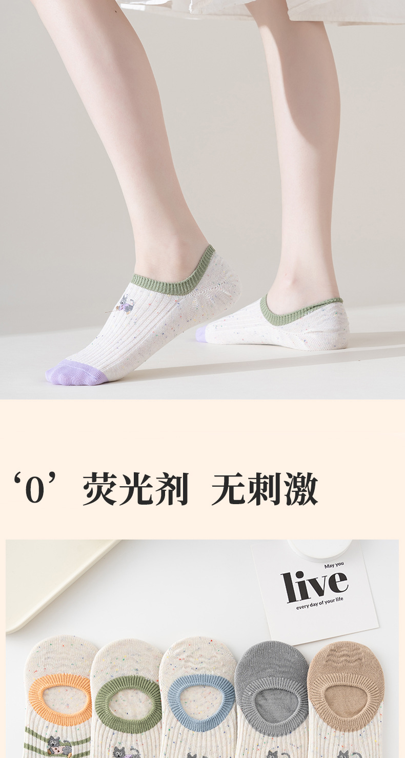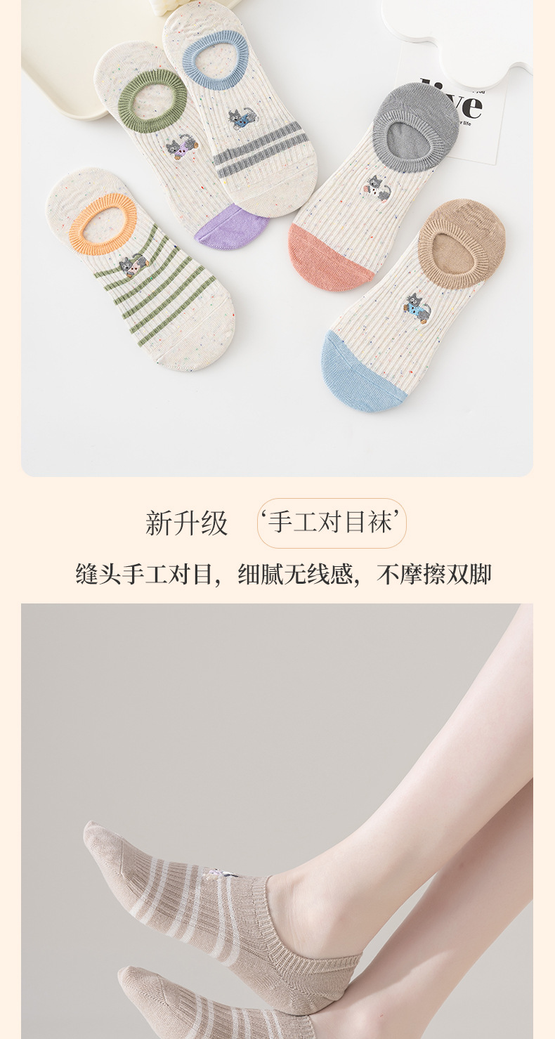 귀여운 만화 양말 여성의 봄과 여름 포인트 원사 양말 실리콘 미끄럼 방지 및 낙하 방지 보트 양말 여름 얇은 짧은 양말