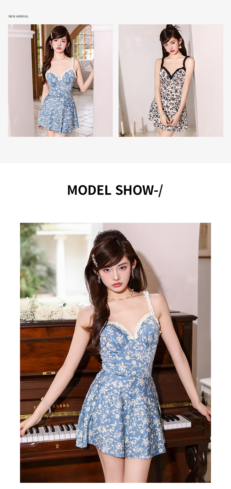 섹시한 순수한 욕망 스타일 수영복 여성용 슈퍼 페어리 플로랄 스커트 슬립 스틸-온 개더 슬림 배꼽 커버 온천 수영복스토어 가기
