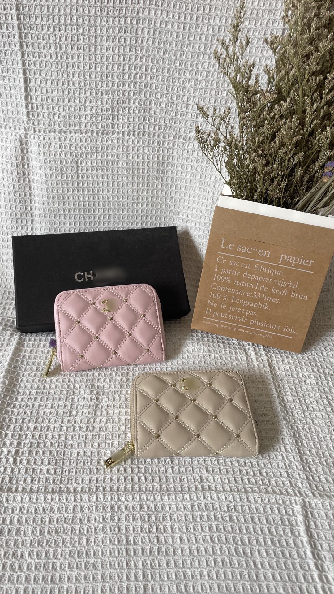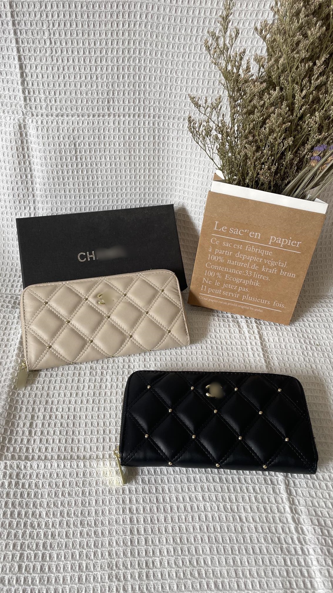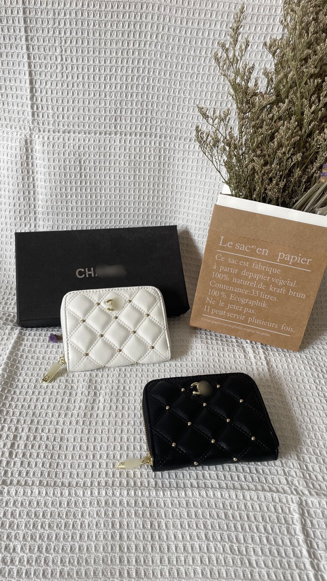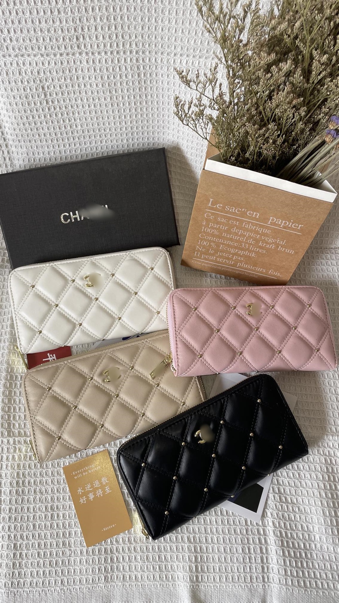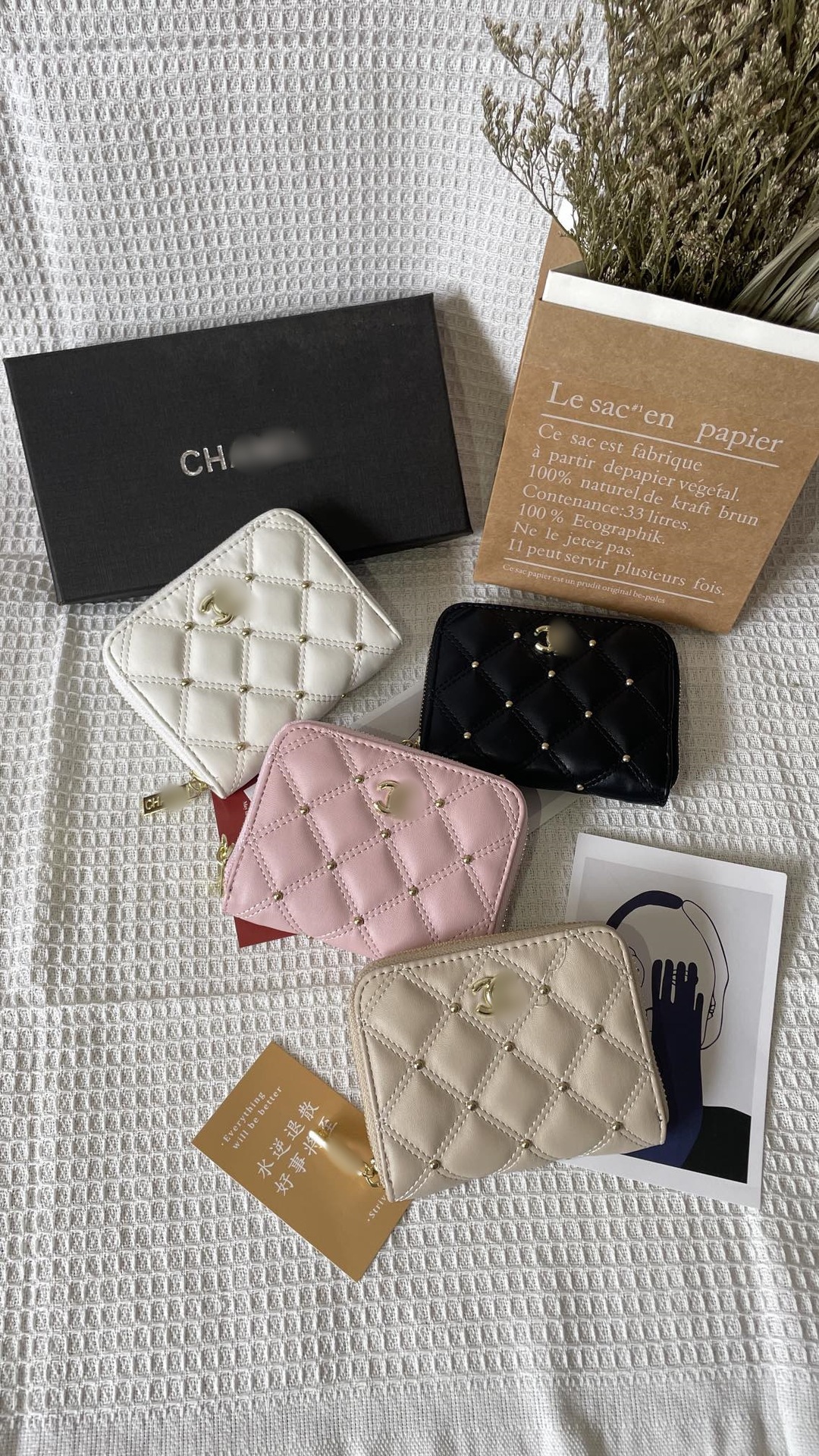 지갑 2024 클래식 자수 라인 쌍 동백 꽃 향기로운 스타일 여성 가방 질감 블랙 멀티 레이어 카드 가방 대형 은행 지갑스토어 가기