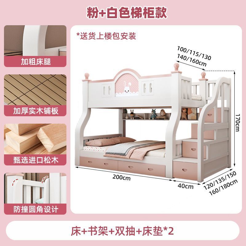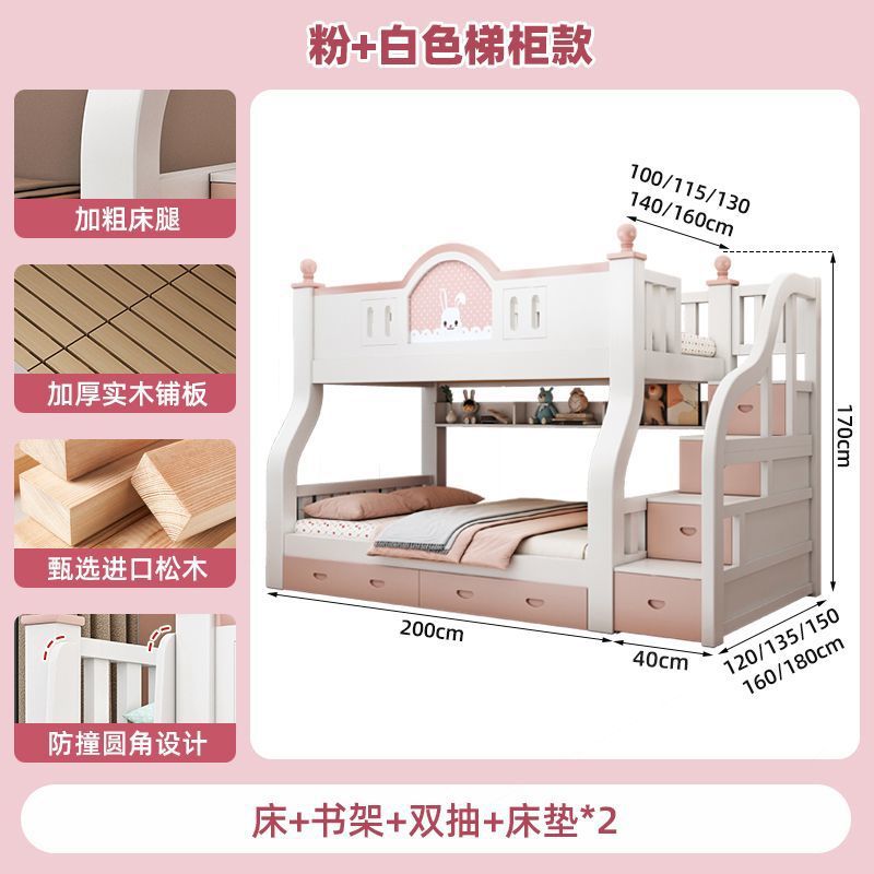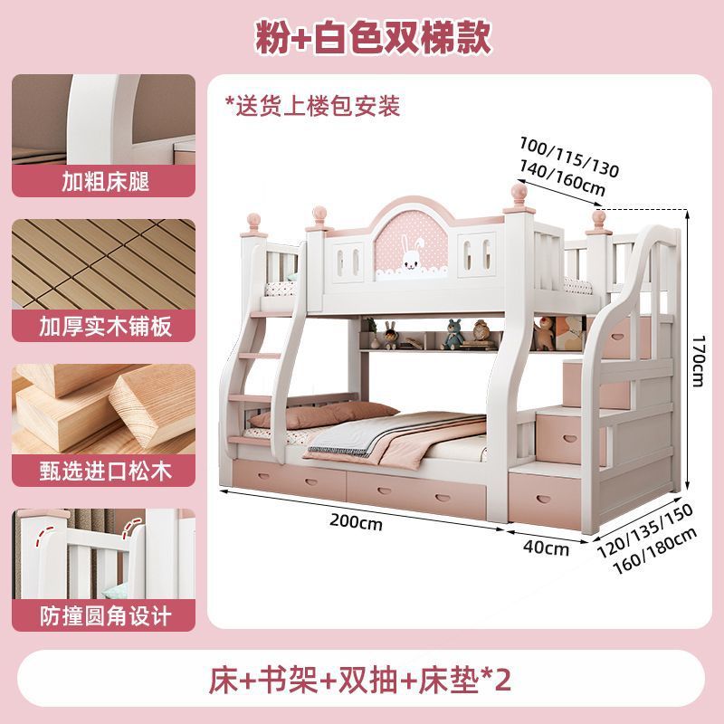 단단한 나무 침대 이층 침대 2 층 높고 낮은 침대 더블 침대 침대 침대 나무 침대 침대 어린이 침대 어머니 침대 조합 침대