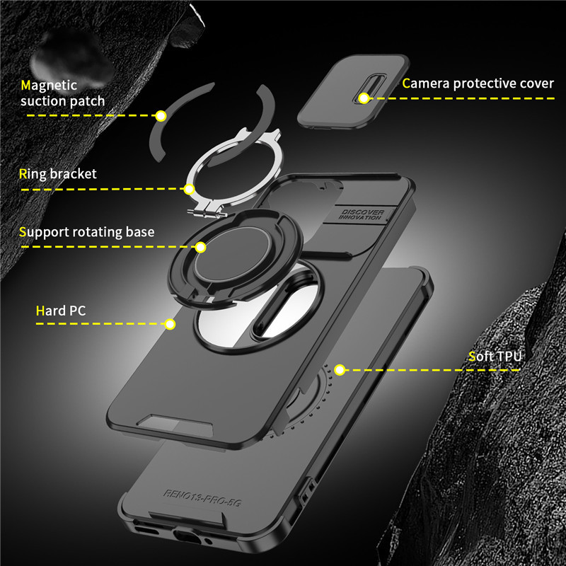 국경을 넘는 범위에서 사용 가능한 OPPO A6 Pro용 푸시윈도우 휴대폰 케이스, Realme15용 낙하 방지 스탠드 링 보호 케이스스토어 가기