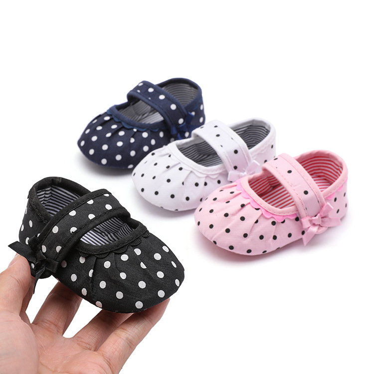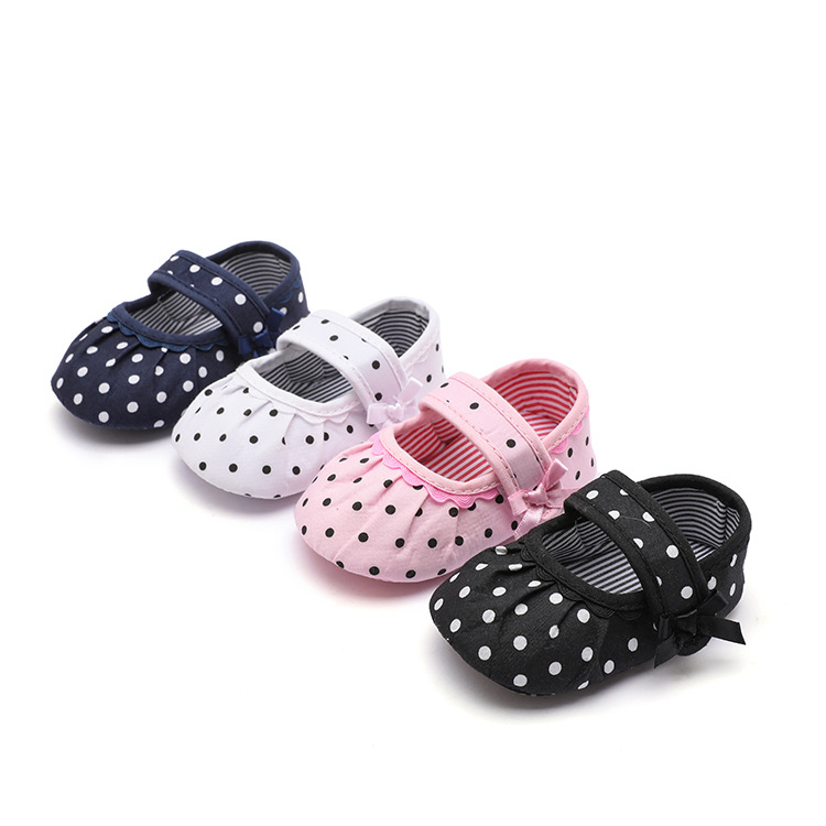 가을 폴카 도트 주름 벨크로 유아 신발 대외 무역 도매 유아 신발 새로운 직물스토어 가기