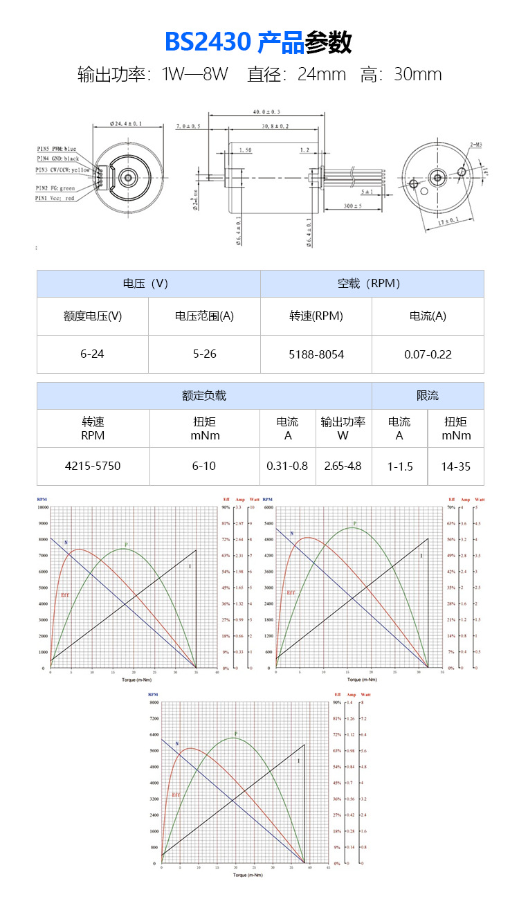 2430 DC 브러시리스 모터 PWM 속도 조절 브러시리스 모터 12V DC 브러시리스 모터 장수명 모터