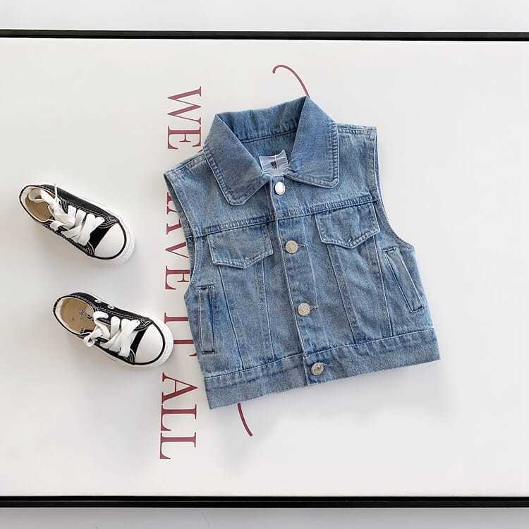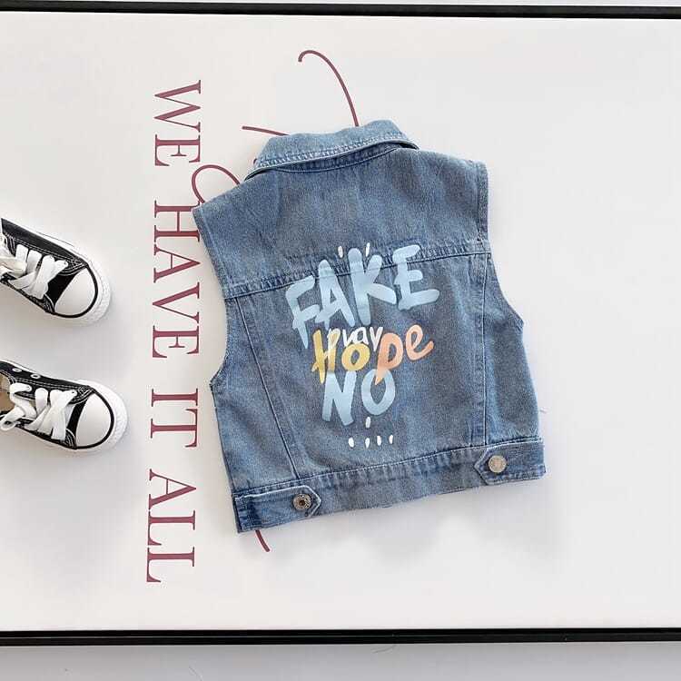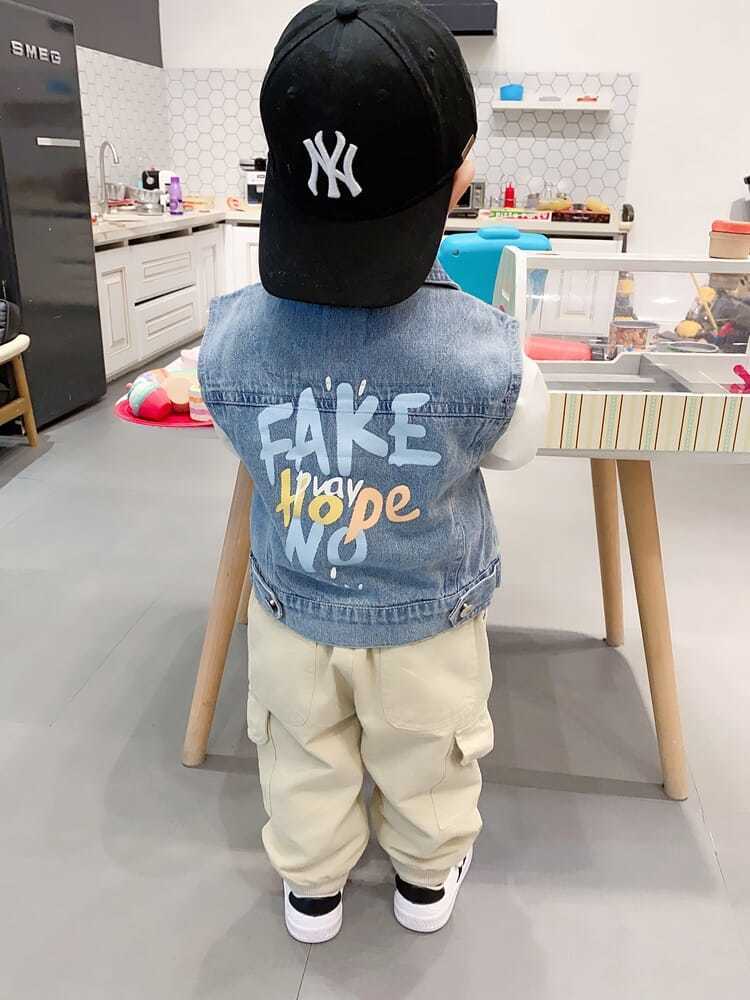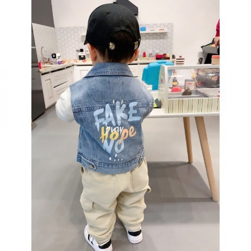 아기의 봄과 가을 부드러운 데님 조끼 소년 유아 및 어린 아이들의 봄 서양식 인쇄 조끼 조끼 유행 재킷스토어 가기