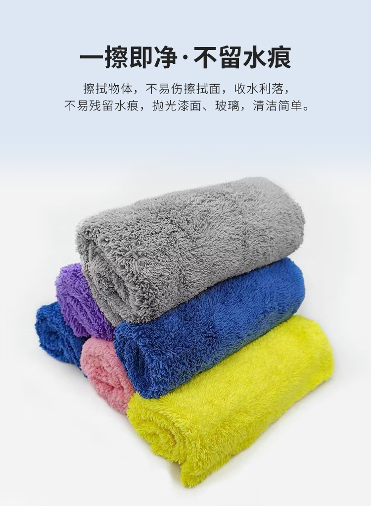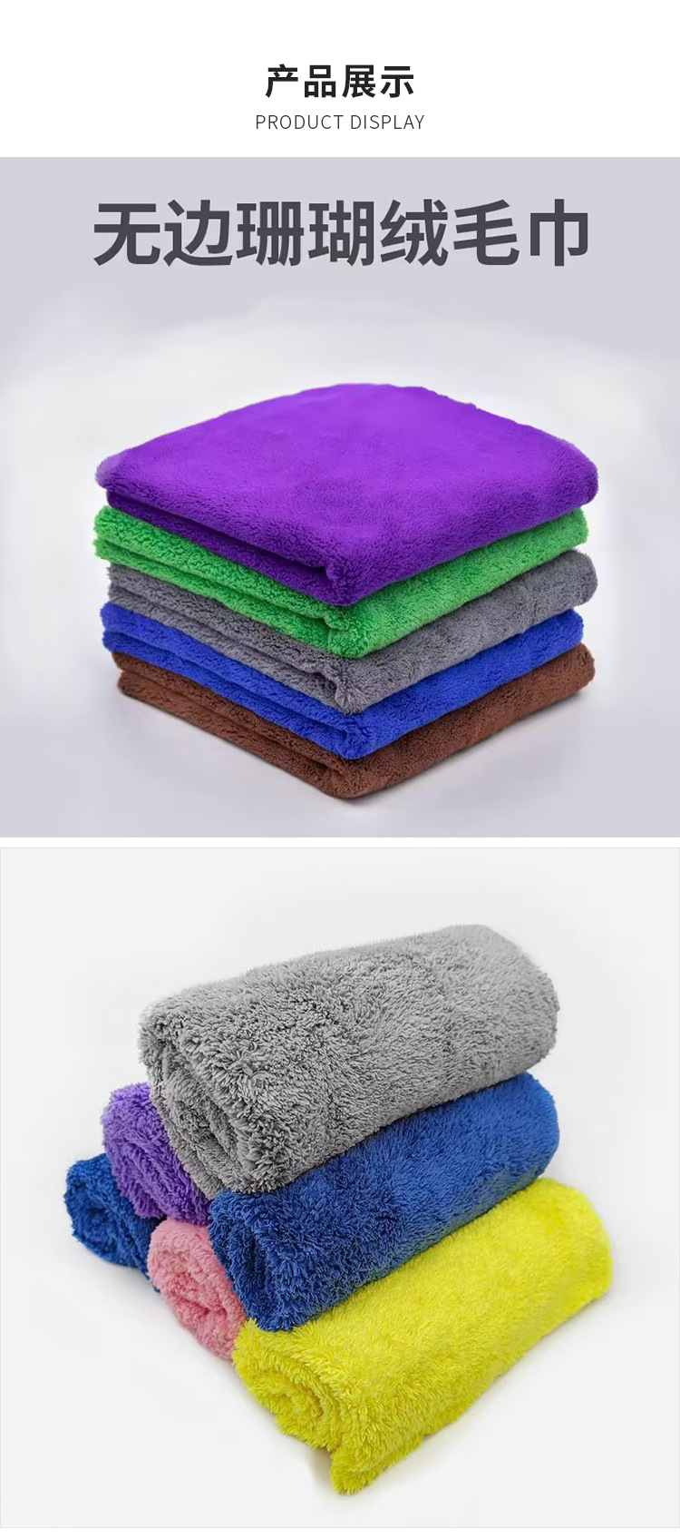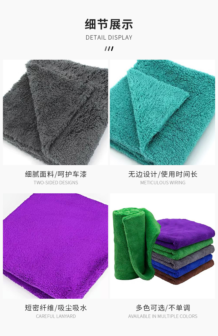 도매 무봉제 산호벨벳 자동차 닦는 타월, 흡수성 타월, 자동차 닦는 두꺼운 청소용 천, 두꺼운 세차용 천