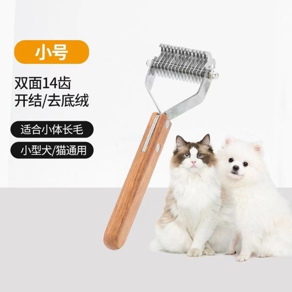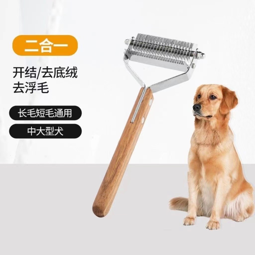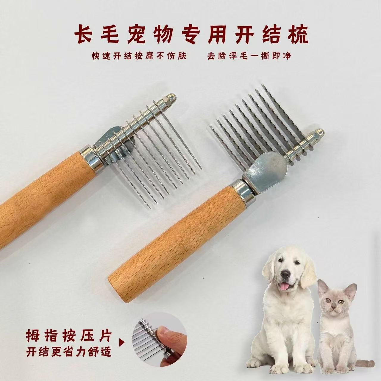 국경 간 애완 동물 오픈 매듭 빗 나무 손잡이 스테인레스 스틸 더블 헤드 개 오픈 매듭 칼 고양이 머리 제거 빗 아티팩트스토어 가기