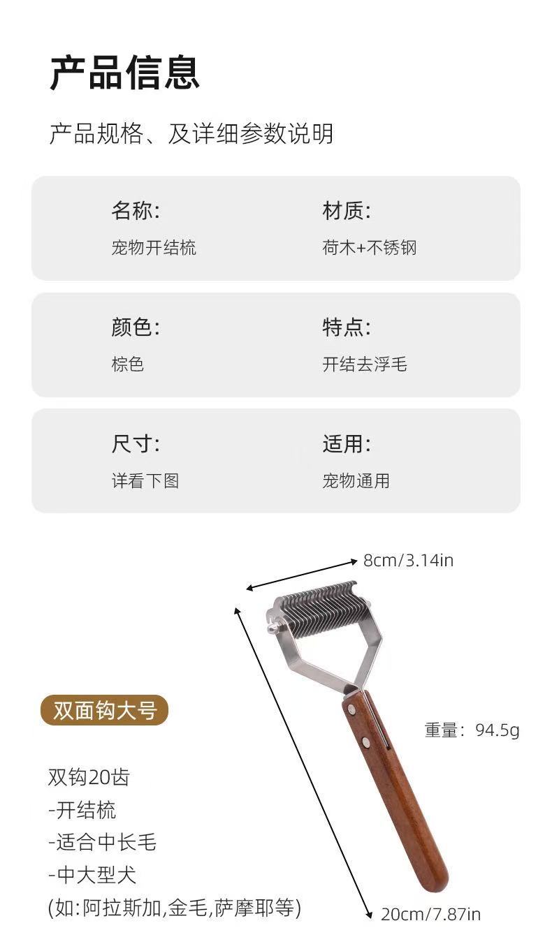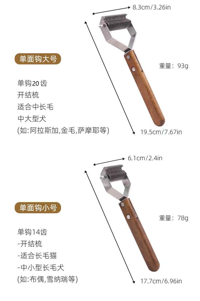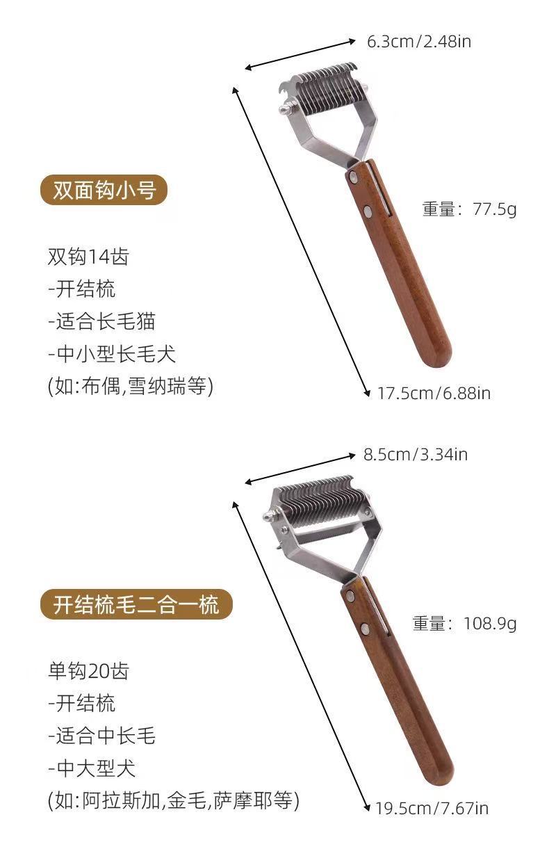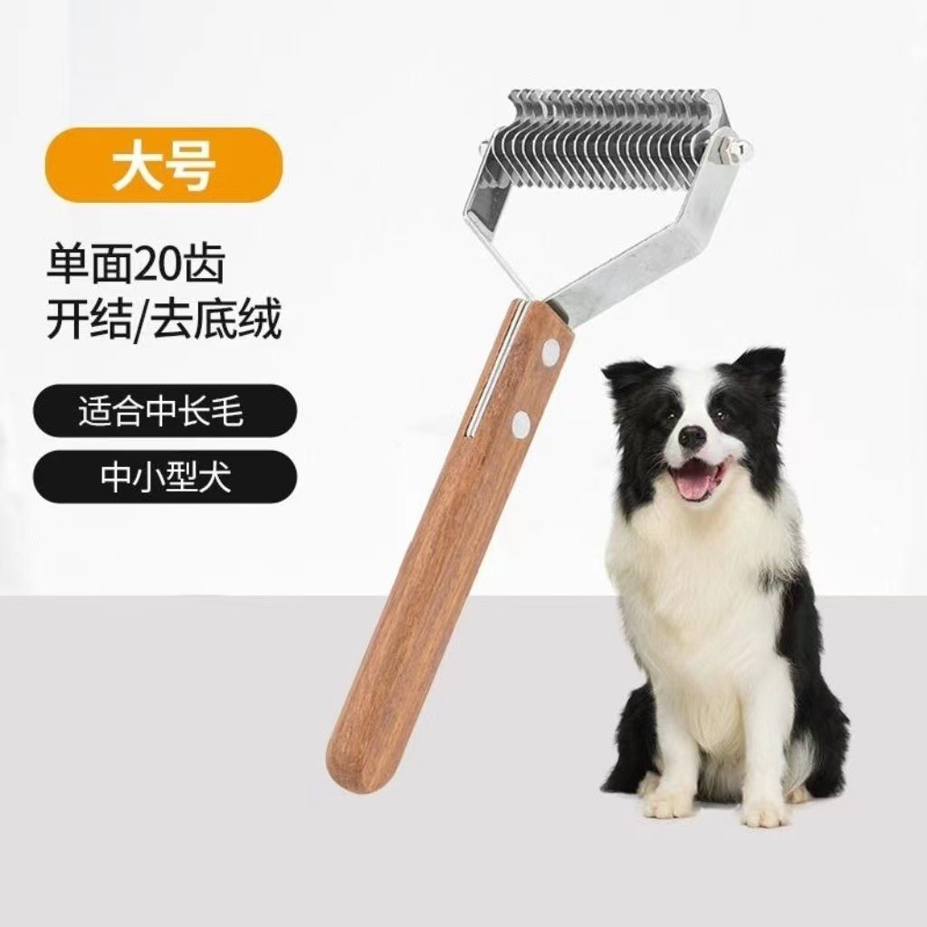 국경 간 애완 동물 오픈 매듭 빗 나무 손잡이 스테인레스 스틸 더블 헤드 개 오픈 매듭 칼 고양이 머리 제거 빗 아티팩트스토어 가기