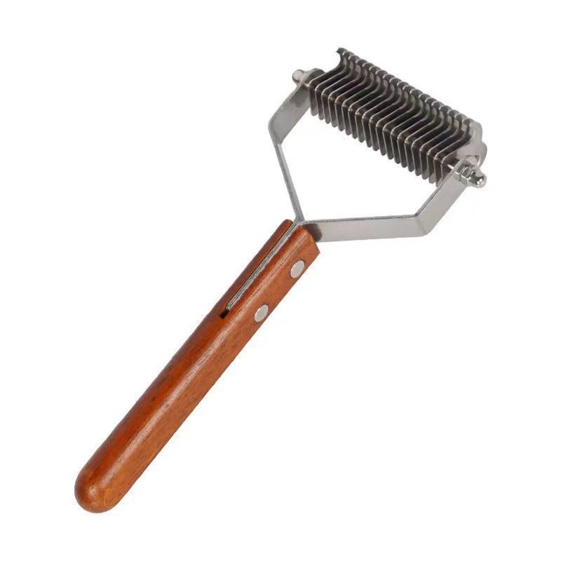 국경 간 애완 동물 오픈 매듭 빗 나무 손잡이 스테인레스 스틸 더블 헤드 개 오픈 매듭 칼 고양이 머리 제거 빗 아티팩트