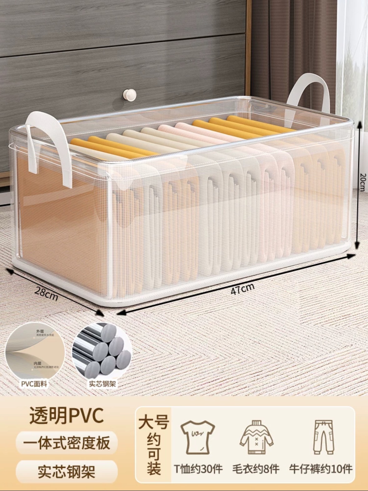 의류 보관함 가정용 투명 보관함 정리함 서랍 속옷 바지 보관함 옷장 분리형 방수