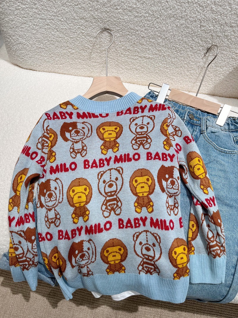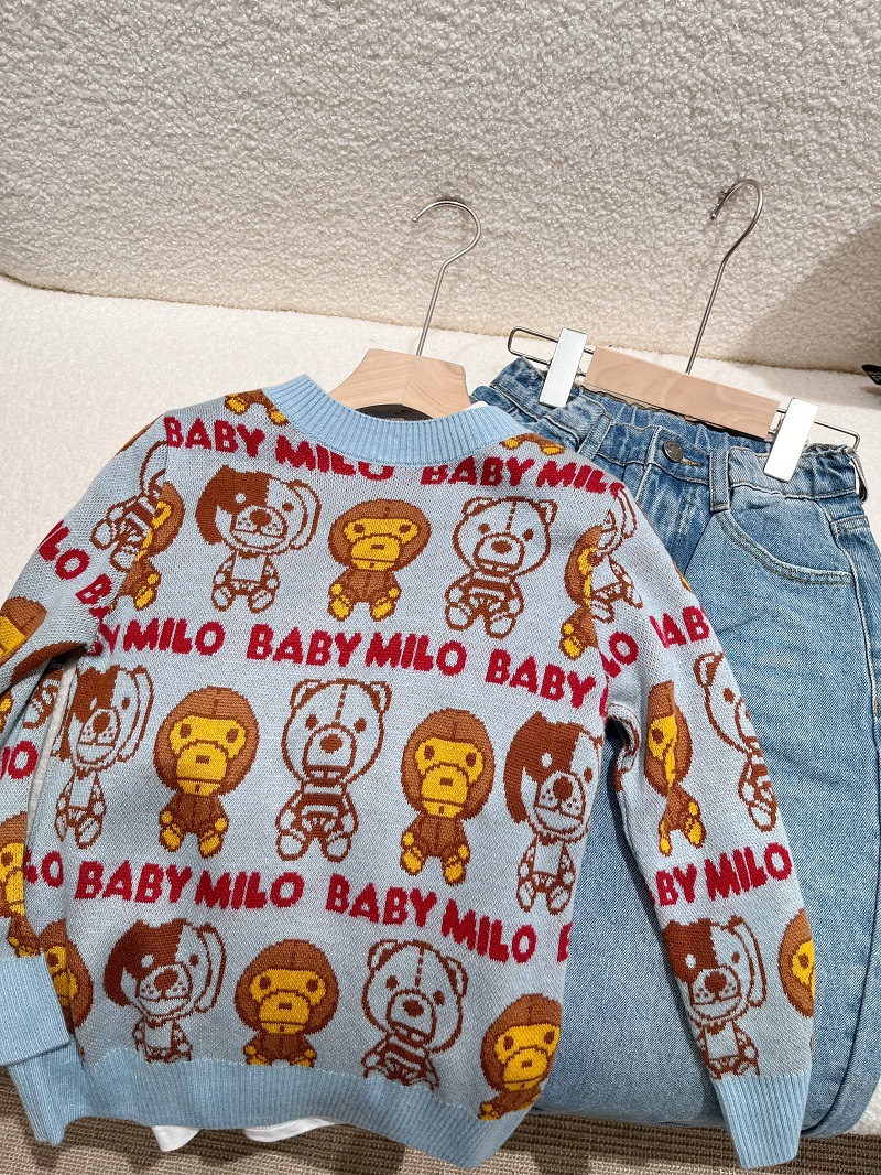 Mshendidi 일본 스타일 트렌디 아동복 25년 가을 겨울 남녀 아기용 자카드 원숭이 프린트 풀오버 스웨터스토어 가기