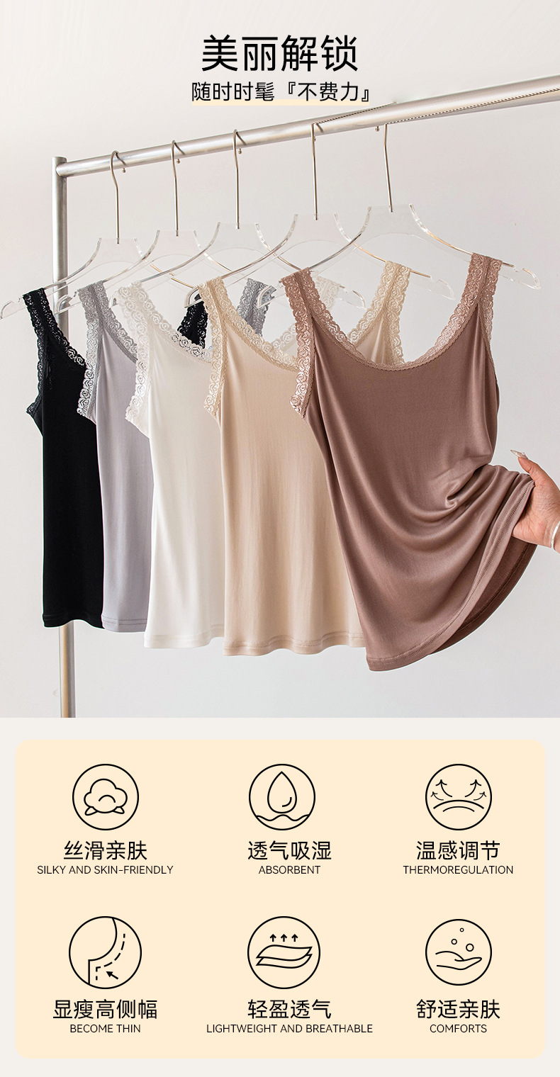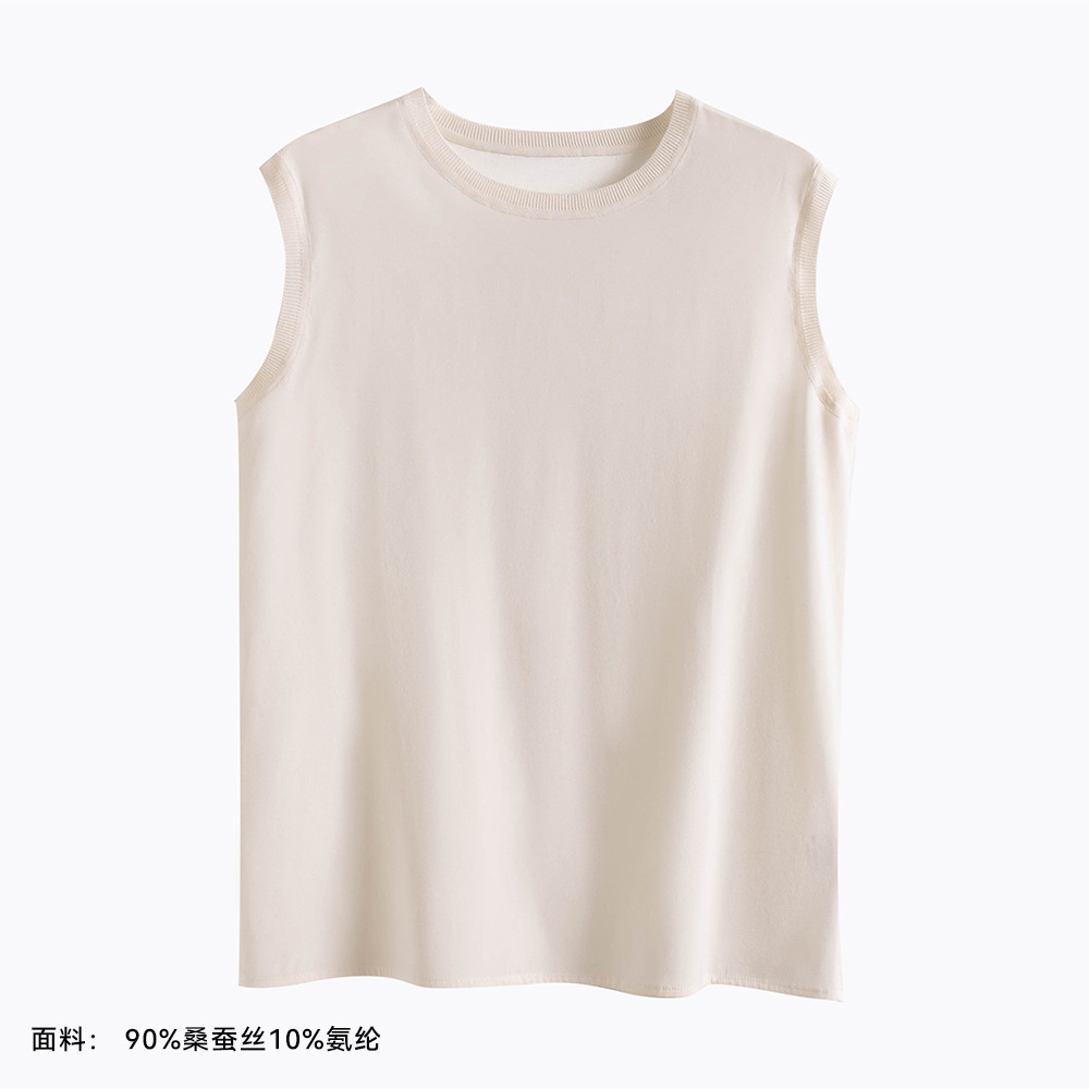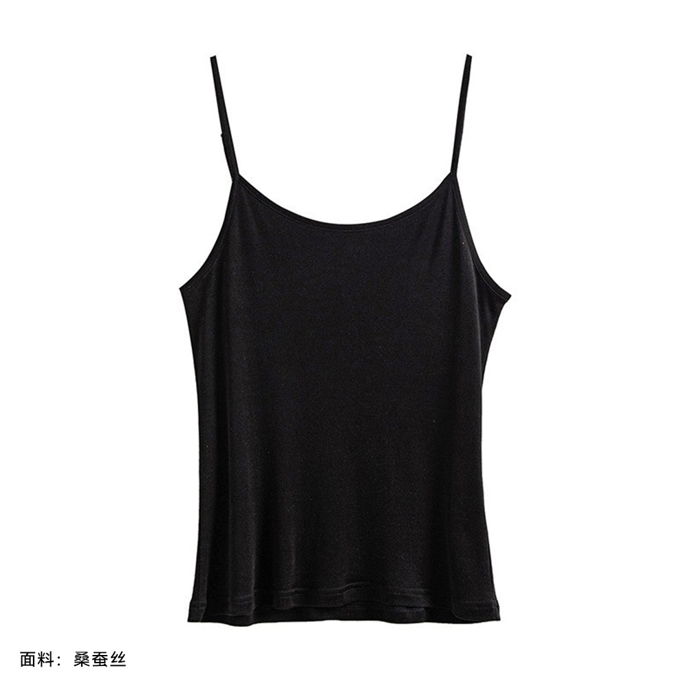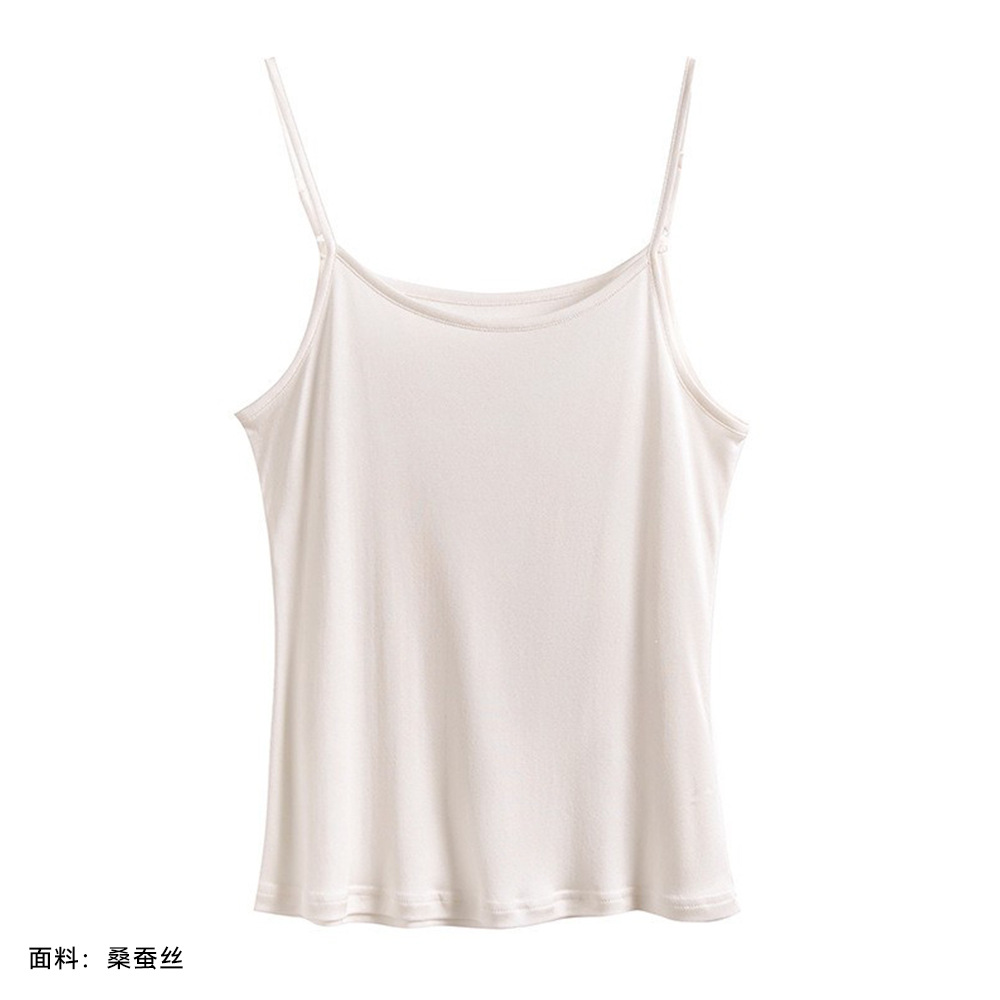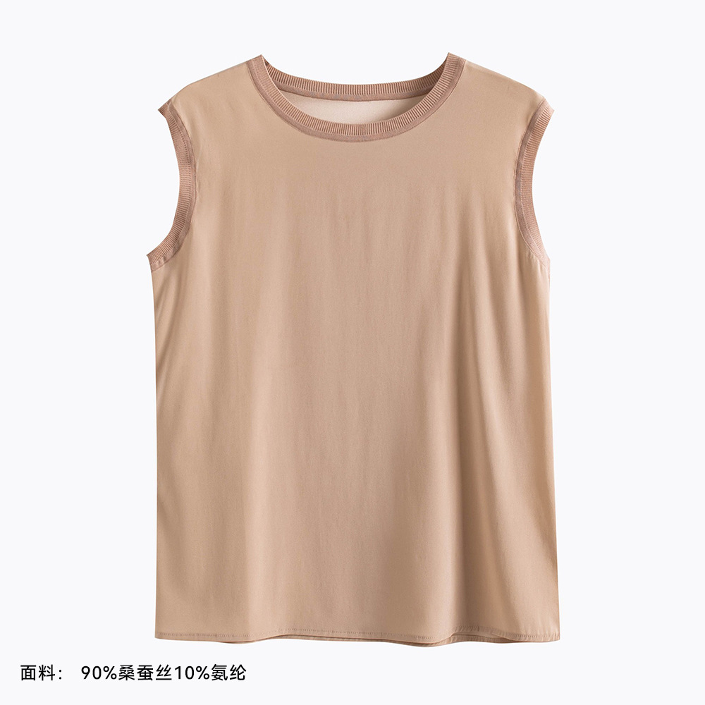 2026 봄/여름 신상 실크 캐미솔 여성용 아우터웨어, 단색 라운드넥, 레이스 테두리가 있는 실크 베이스 레이어스토어 가기
