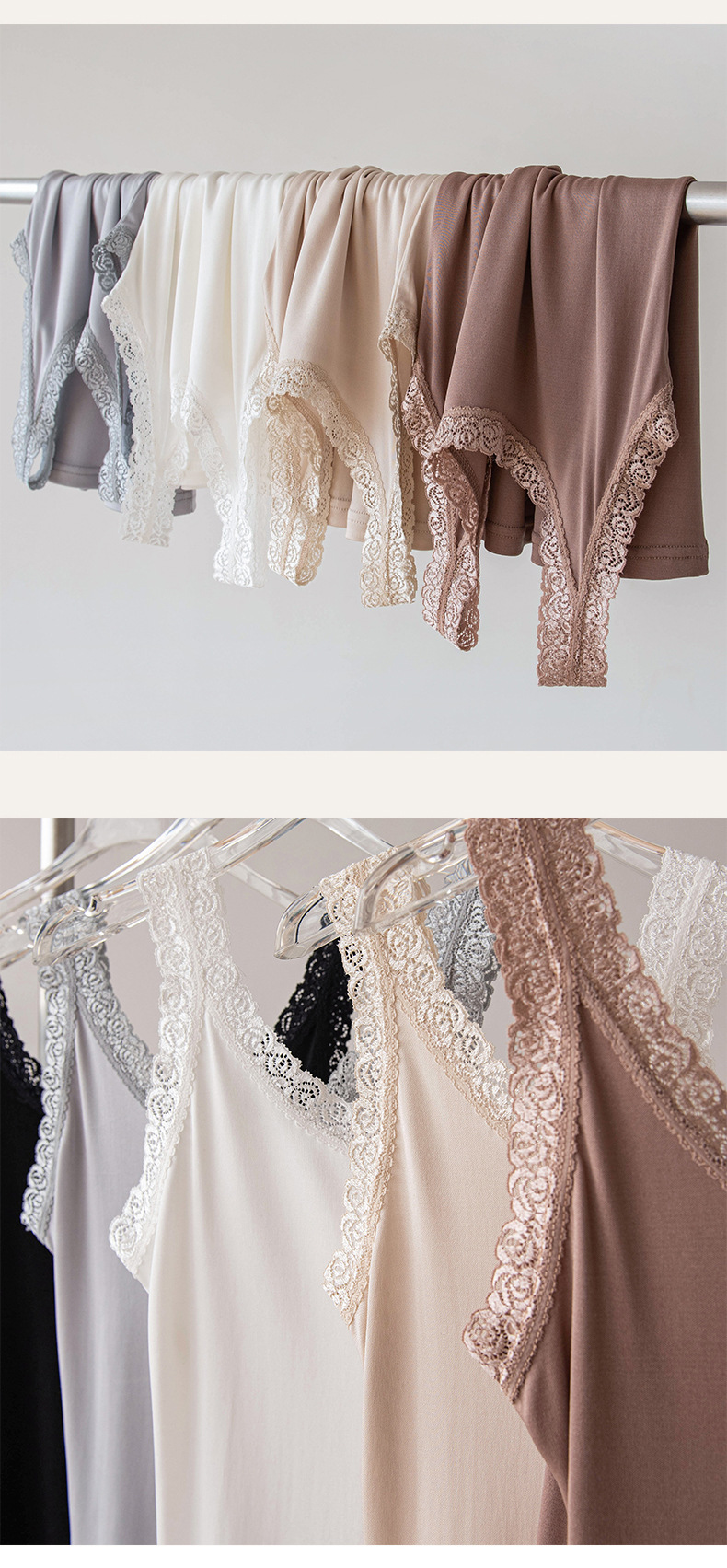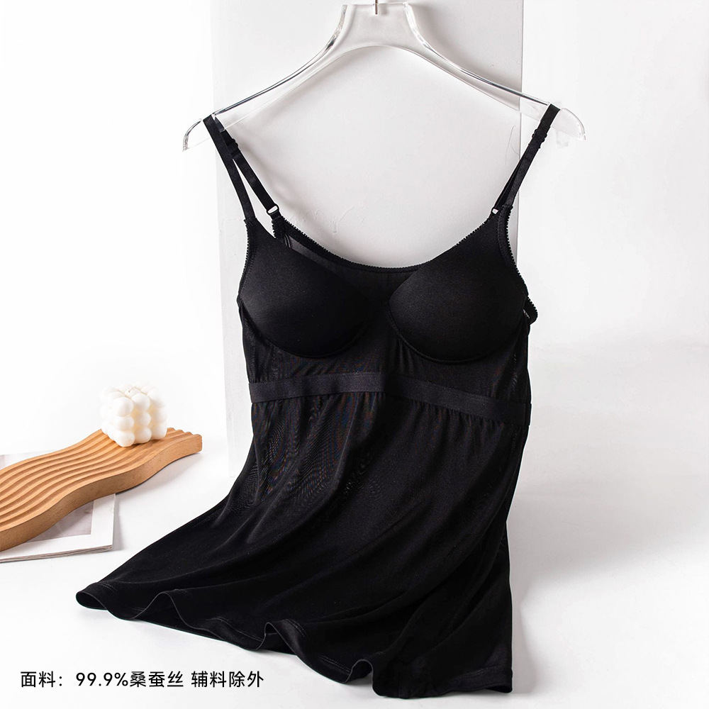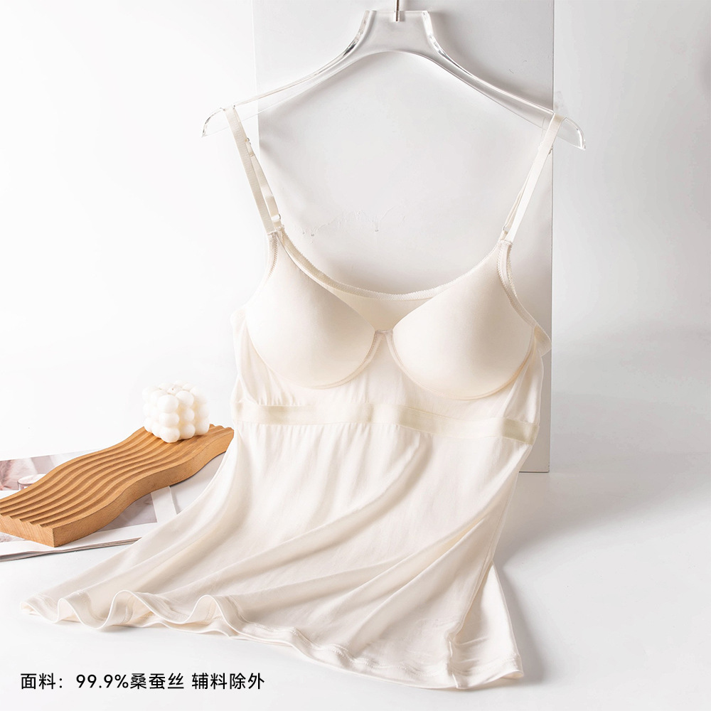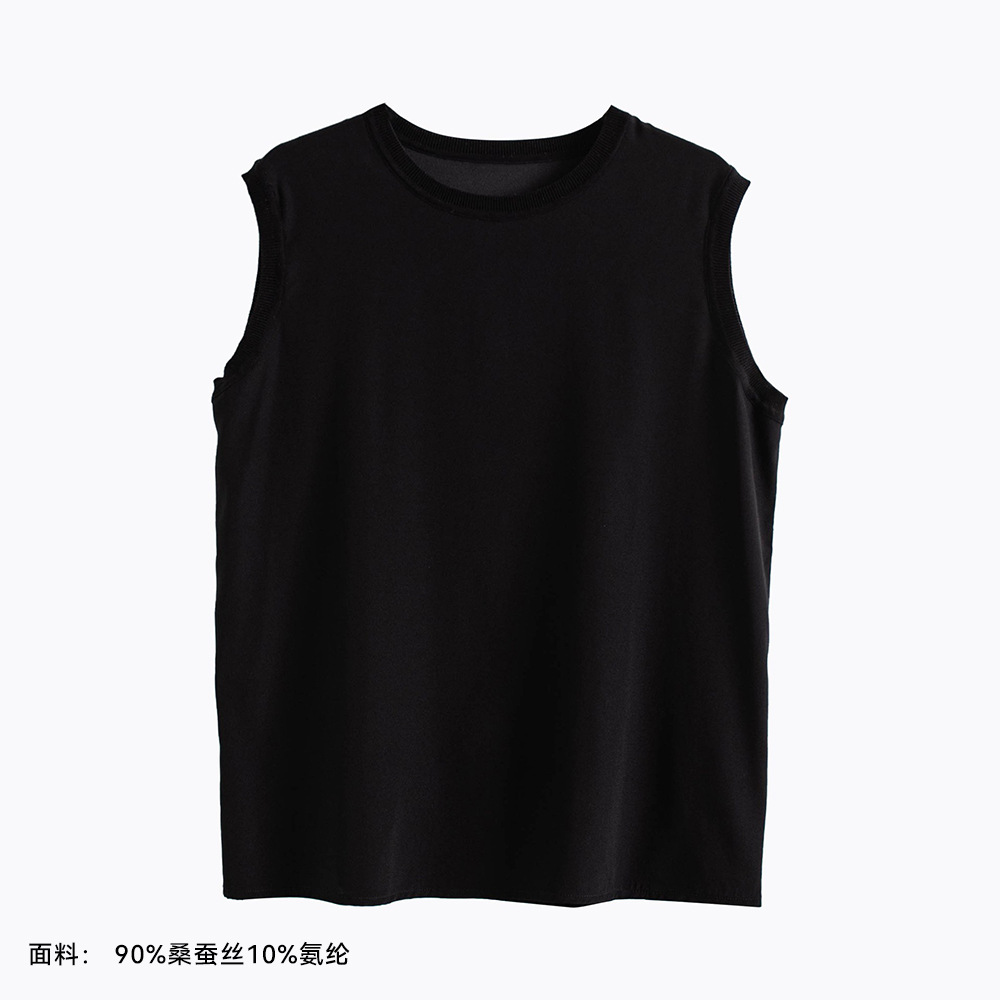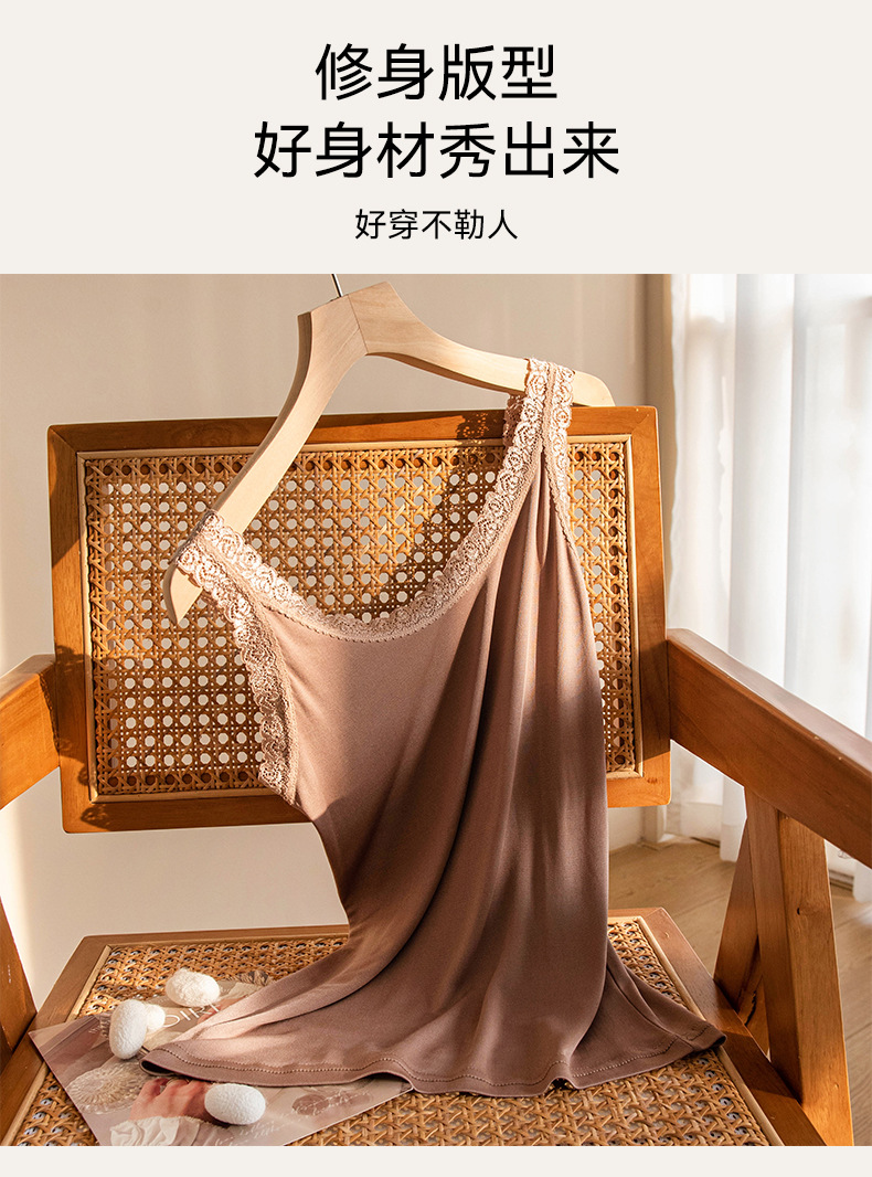 2026 봄/여름 신상 실크 캐미솔 여성용 아우터웨어, 단색 라운드넥, 레이스 테두리가 있는 실크 베이스 레이어스토어 가기