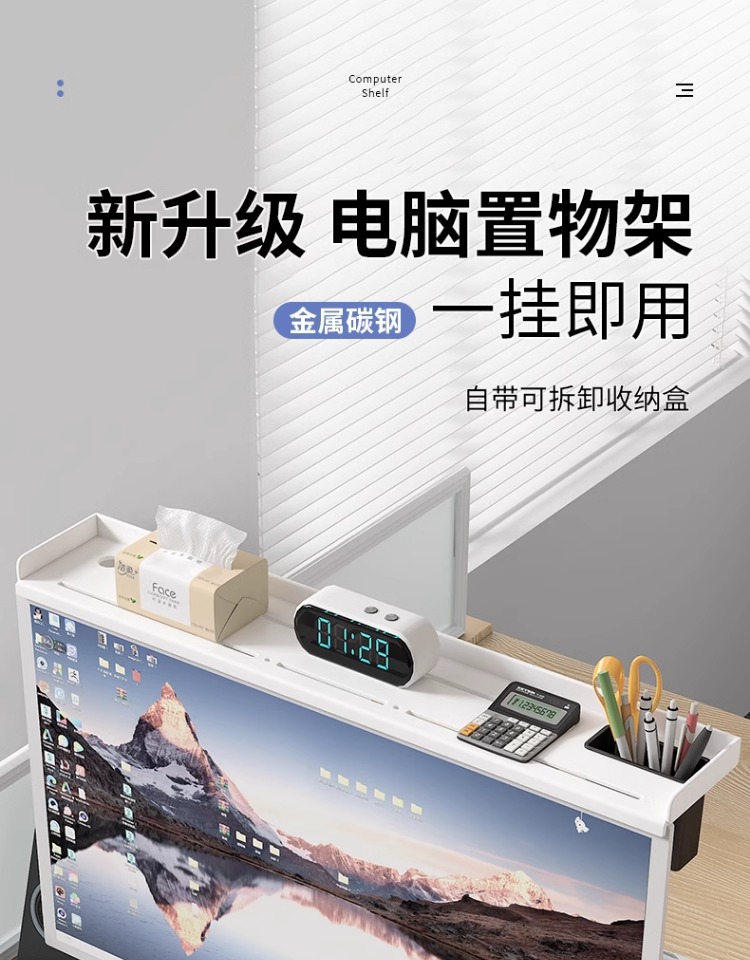 컴퓨터 최고 스토리지 랙 펀치-무료 데스크톱 디스플레이 화면 상단 스토리지 랙