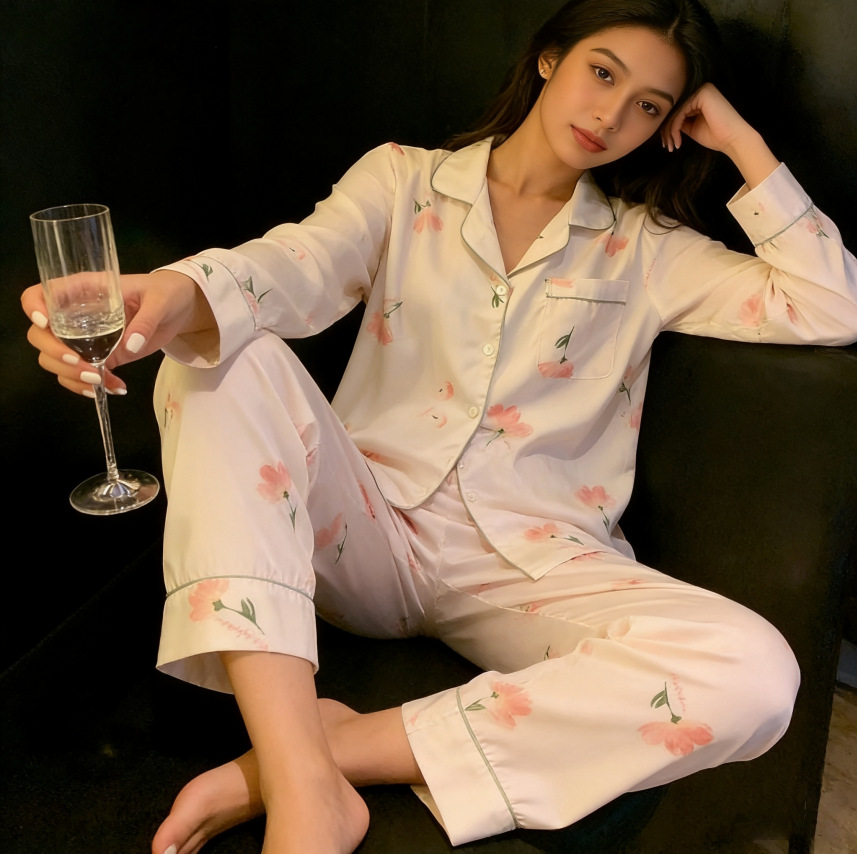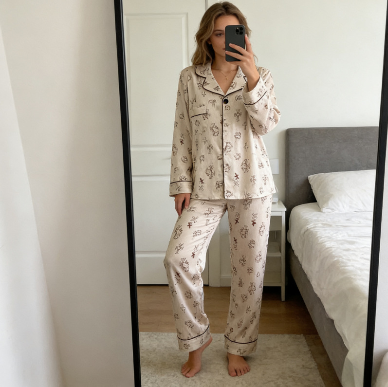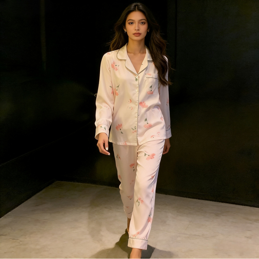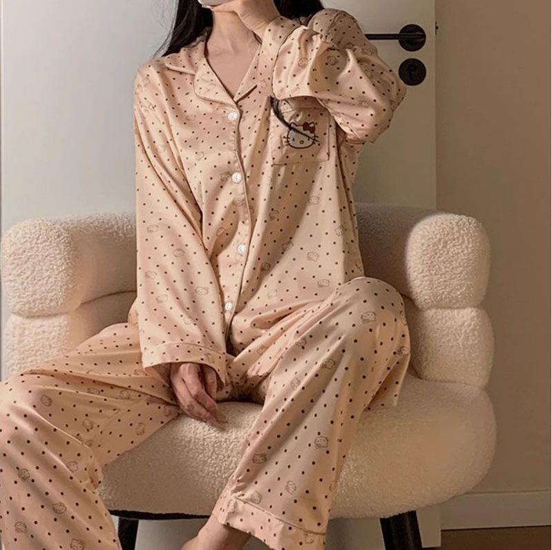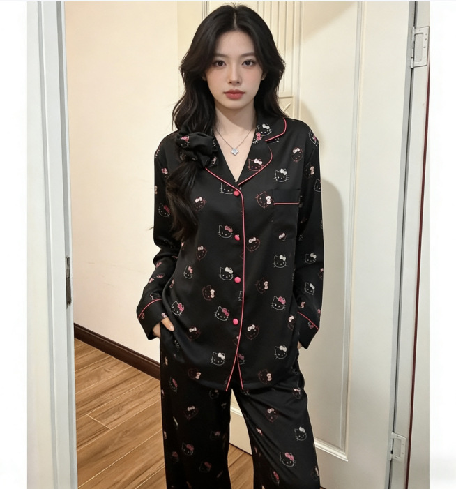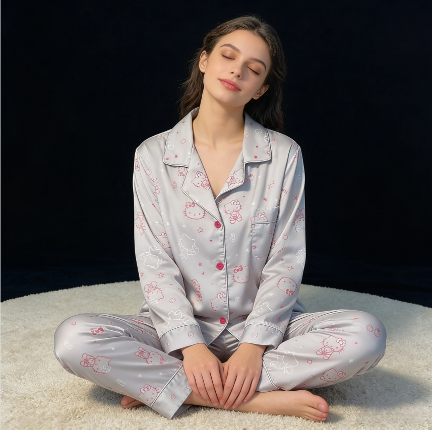 태국 인도네시아 국경 간 재고 파자마 여성 여름 긴 소매 만화 카디건 홈 옷 아마존 동남아시아 얇은스토어 가기