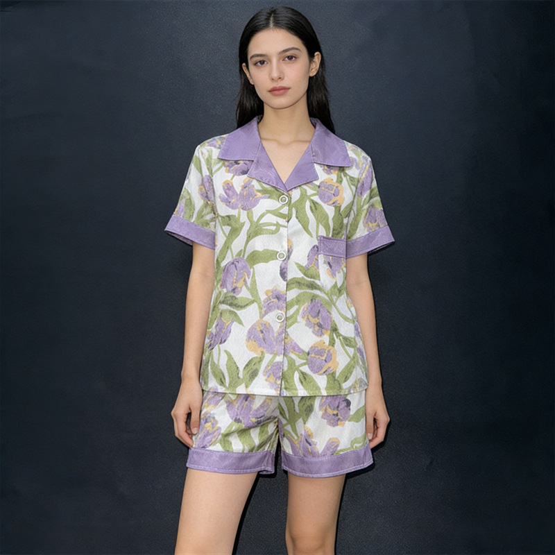 태국 인도네시아 국경 간 재고 파자마 여성 여름 긴 소매 만화 카디건 홈 옷 아마존 동남아시아 얇은