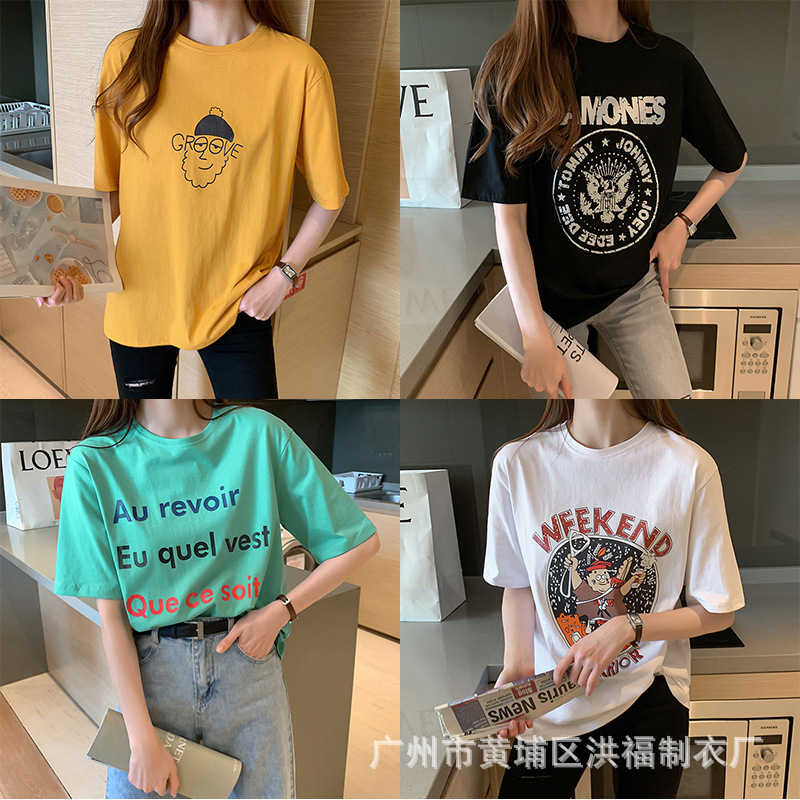 빅사이즈 여성복 여름 루즈핏 큰 사이즈 체형을 커버해주는 슬리밍 탑 라운드넥 반팔 티셔츠 도매 공급 트렌디 상품스토어 가기