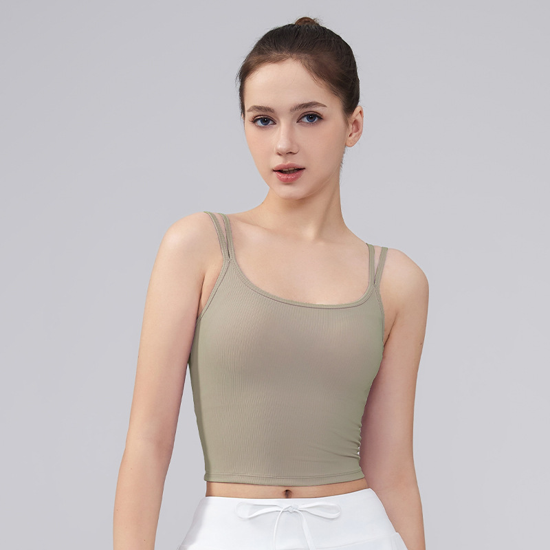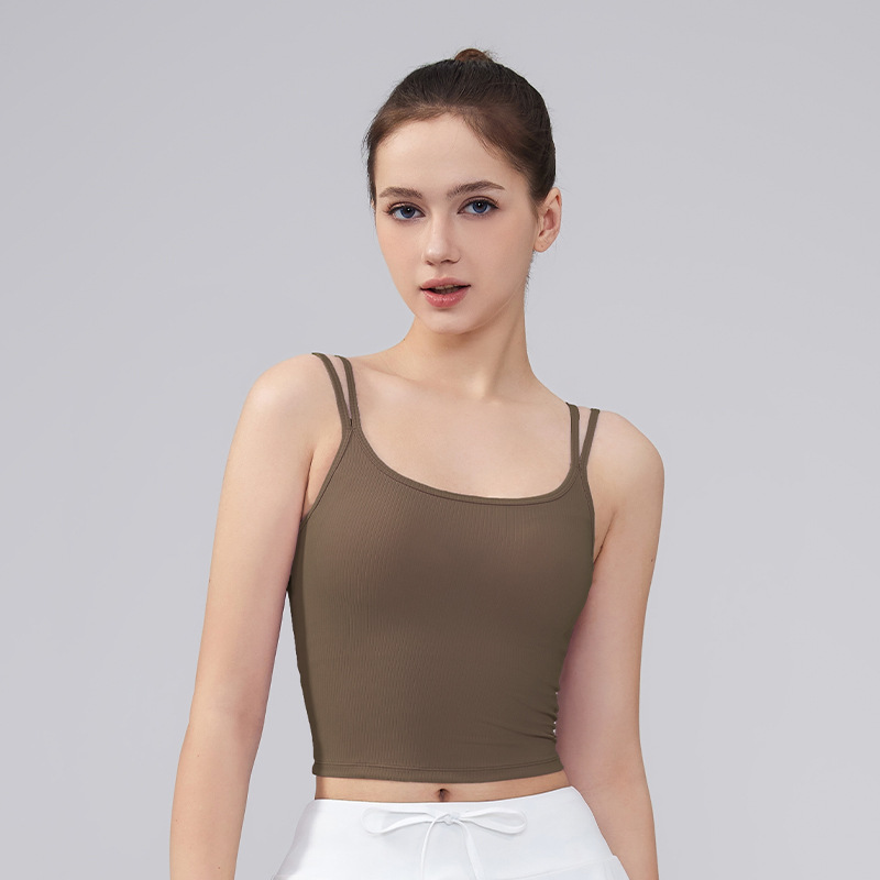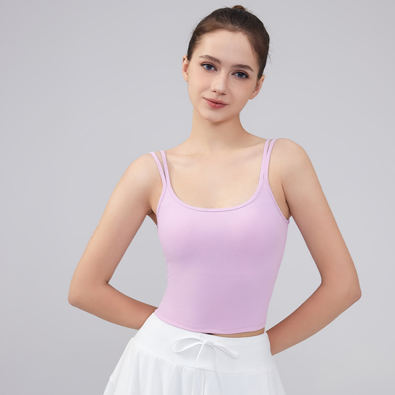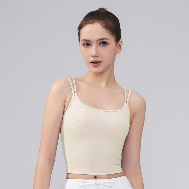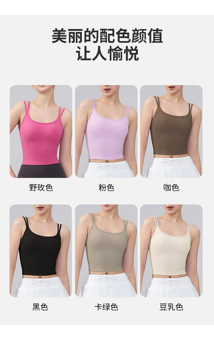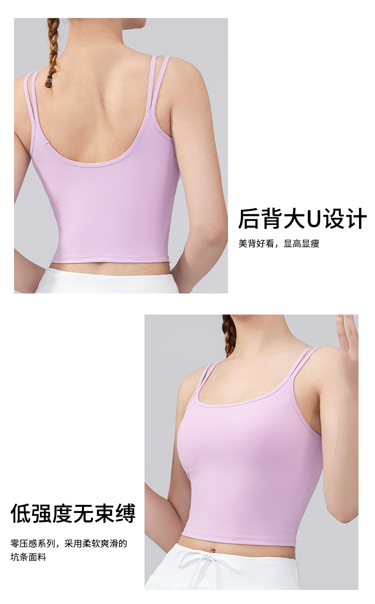 2025 년 여름 새로운 스포츠 브라 고정 원피스 컵 요가 의류 가슴 패드 여성과 아름다운 백 태그 조끼를 실행