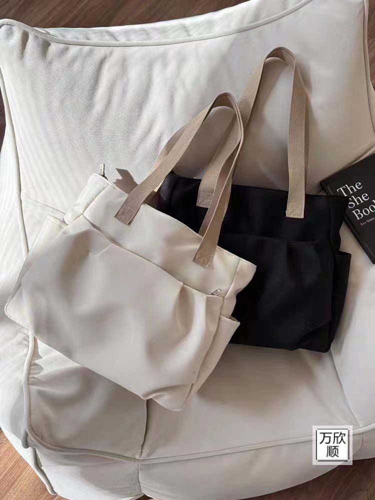 원래 주름 된 대용량 예술적 캔버스 통근 토트 백 캐주얼 올 매치 학생 간단한 어깨 가방 트렌디 백