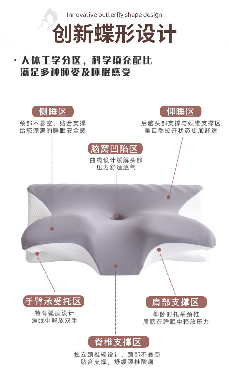 클래스 나비 베개 자궁 경부 척추 보호 메모리 폼 베개 코어 느린 리바운드는 베갯잇의 단일 도움 수면 기억 베개로 붕괴되지 않습니다.스토어 가기