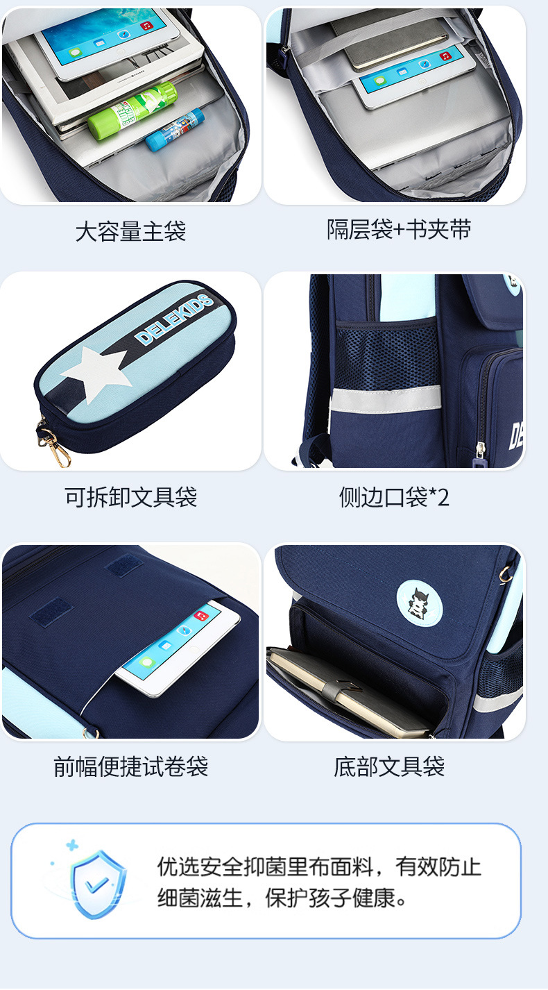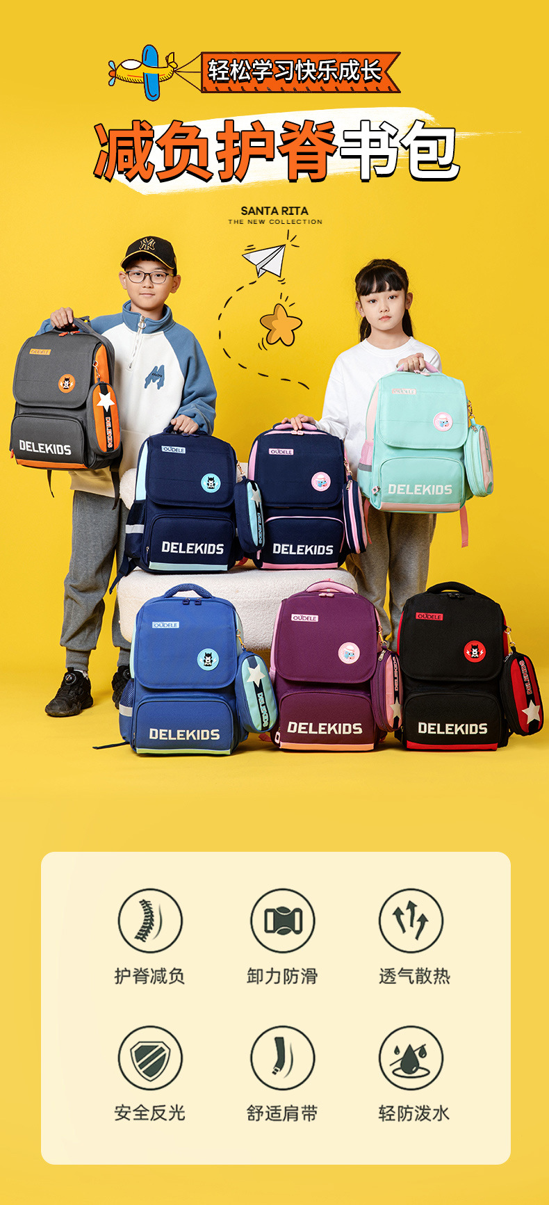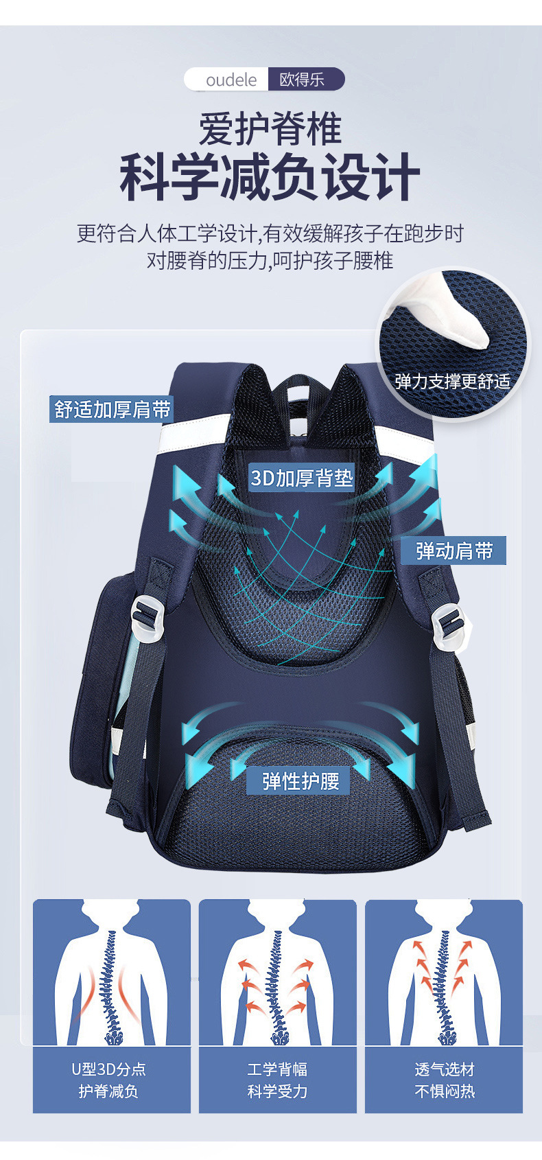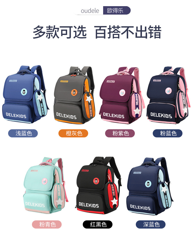 新款儿童书包1-6年级轻便减负护脊大容量牛津布背包男女孩双肩包