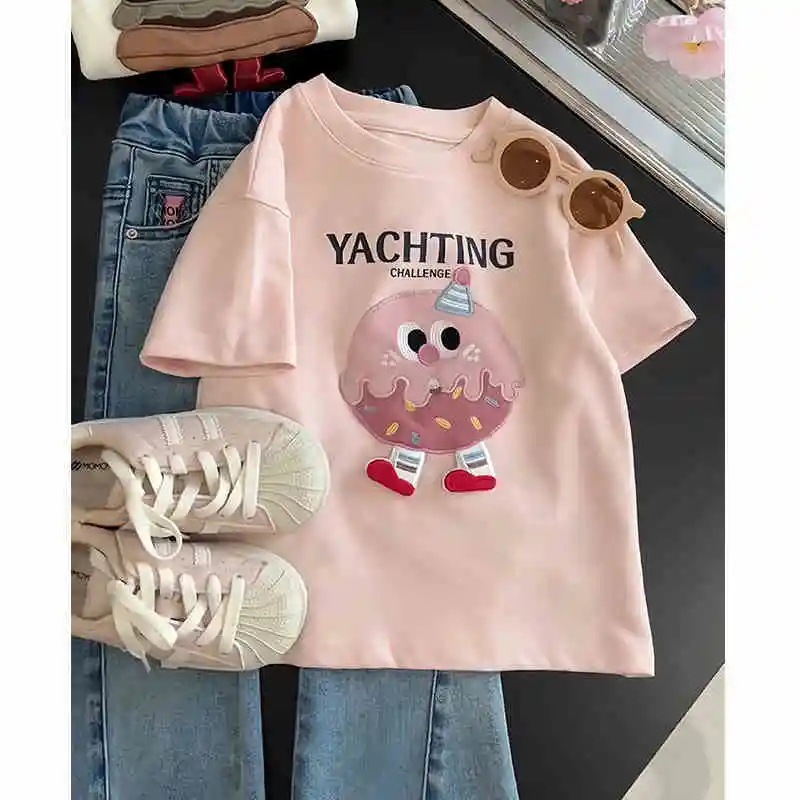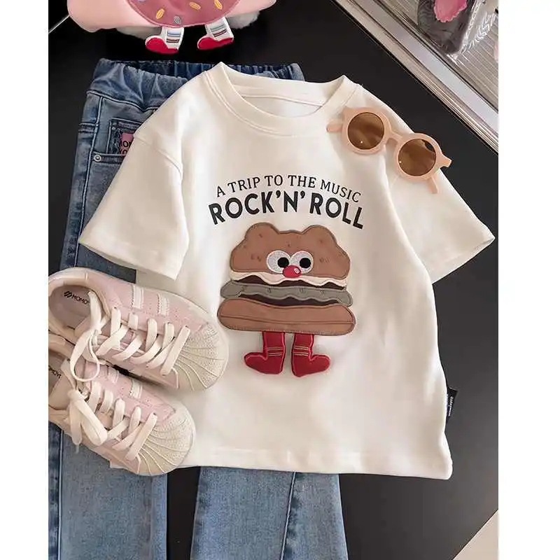 걸스 티셔츠 여름 2025 새로운 스타일 어린이 만화 반팔 티셔츠 빅 걸스 여름 슈퍼 잘 생긴 반소매 탑스토어 가기