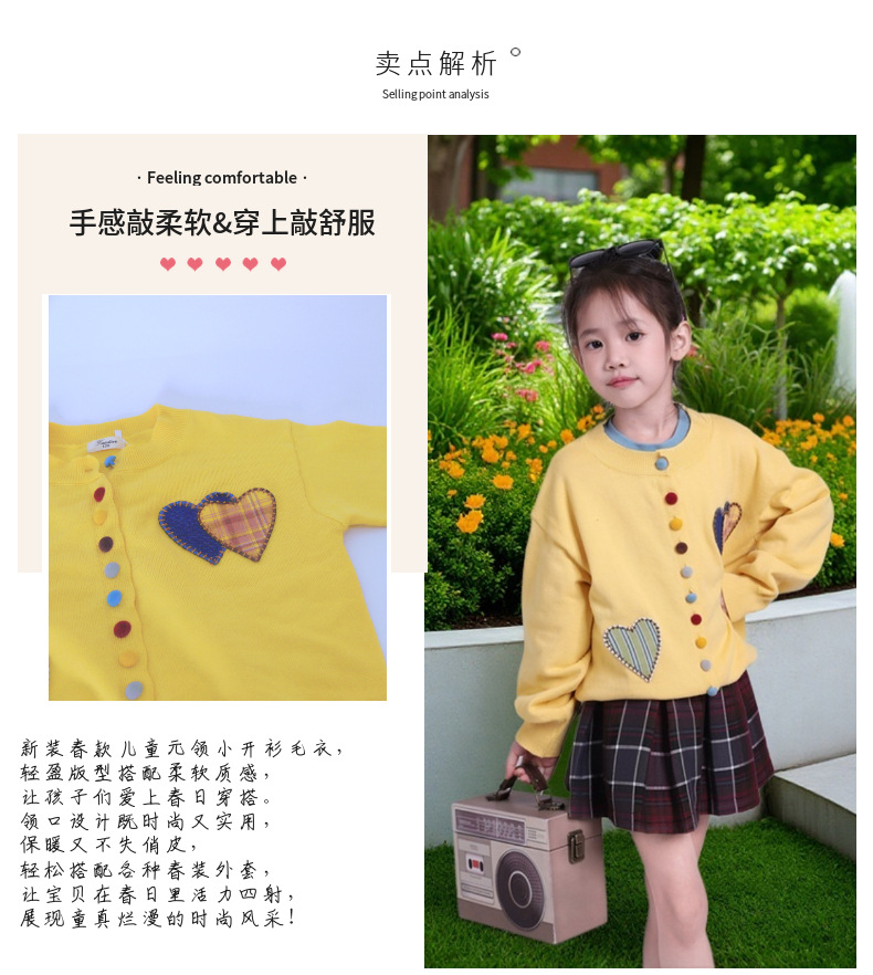 여아 러브 스웨터 가디건 봄, 가을 달콤한 라운드 넥 베이비 봄 컬러 스웨터 재킷 러브 스타일
