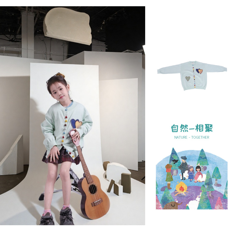여아 러브 스웨터 가디건 봄, 가을 달콤한 라운드 넥 베이비 봄 컬러 스웨터 재킷 러브 스타일스토어 가기