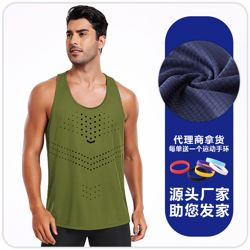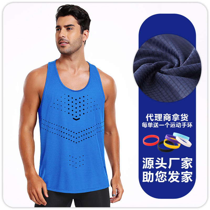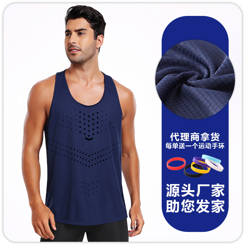 2025 여름 새로운 물방울 무늬 빠른 건조 통기성 남성 I 자형 조끼 아이스 실크 스포츠 달리기 피트니스 의류스토어 가기