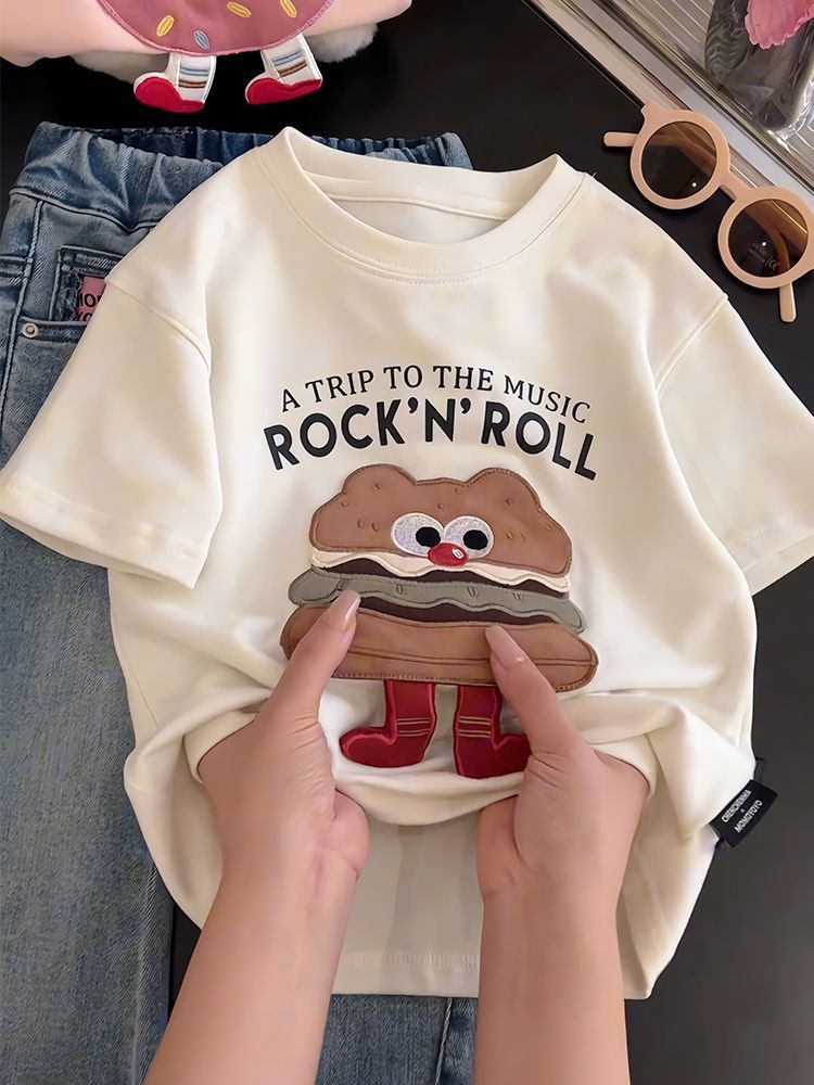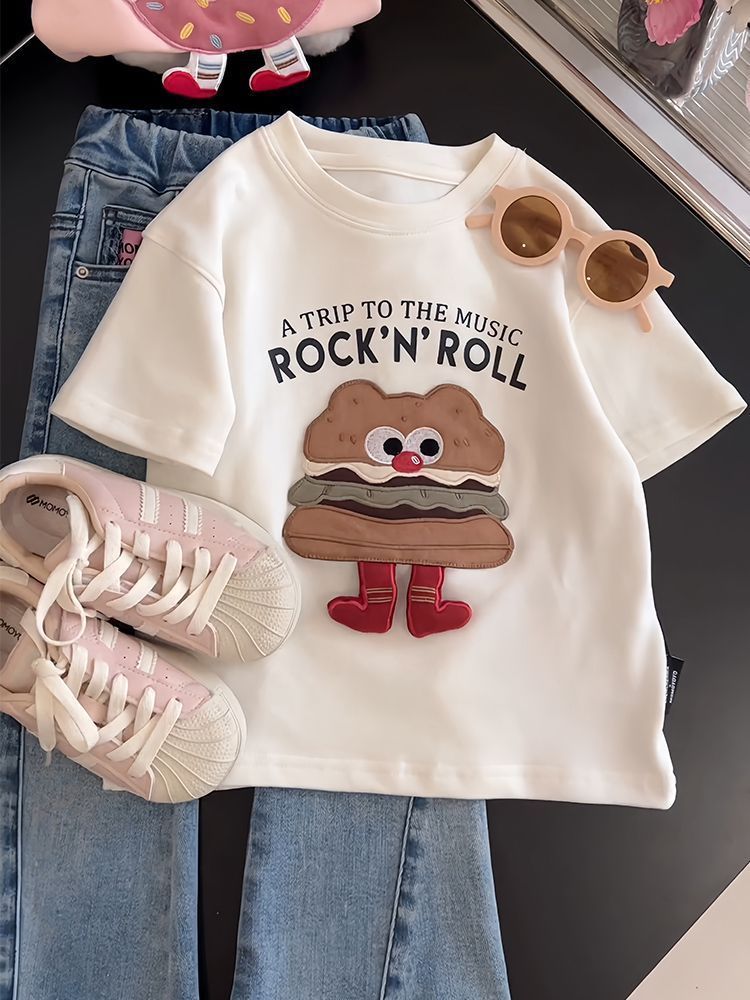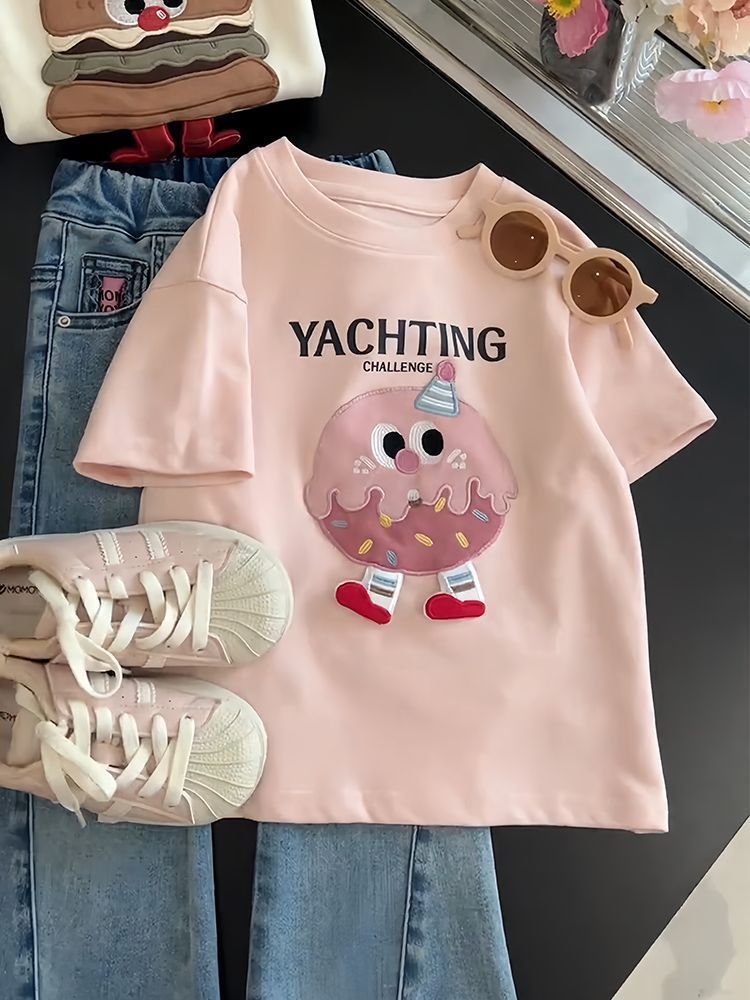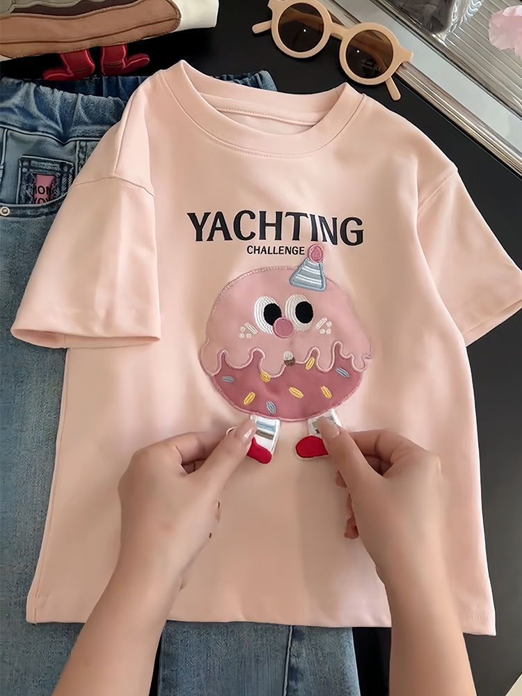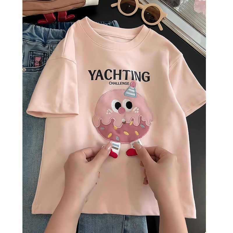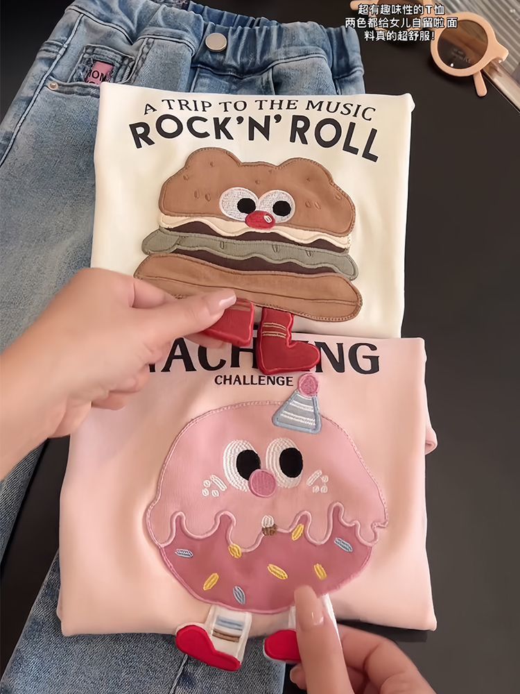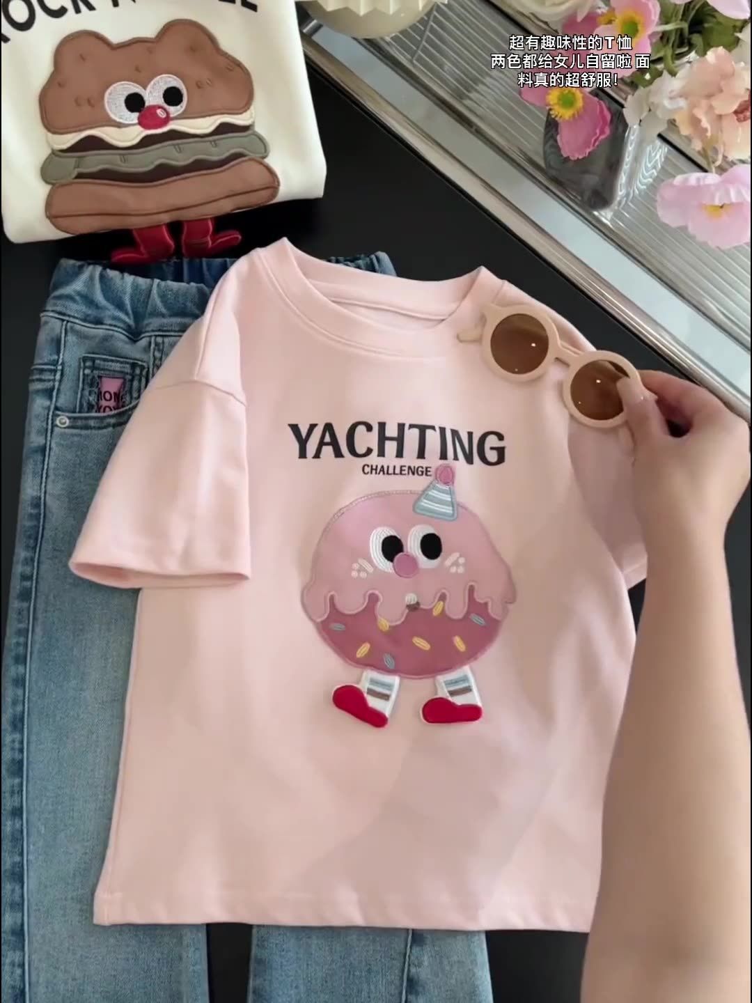 걸스 티셔츠 여름 2025 새로운 스타일 어린이 만화 반팔 티셔츠 빅 걸스 여름 슈퍼 잘 생긴 반소매 탑스토어 가기