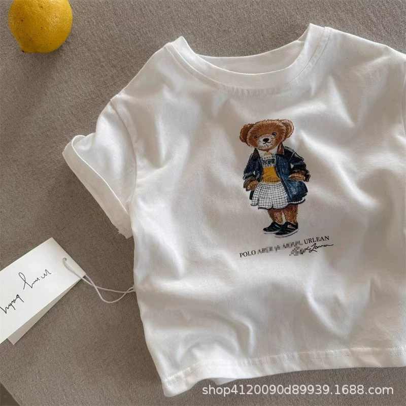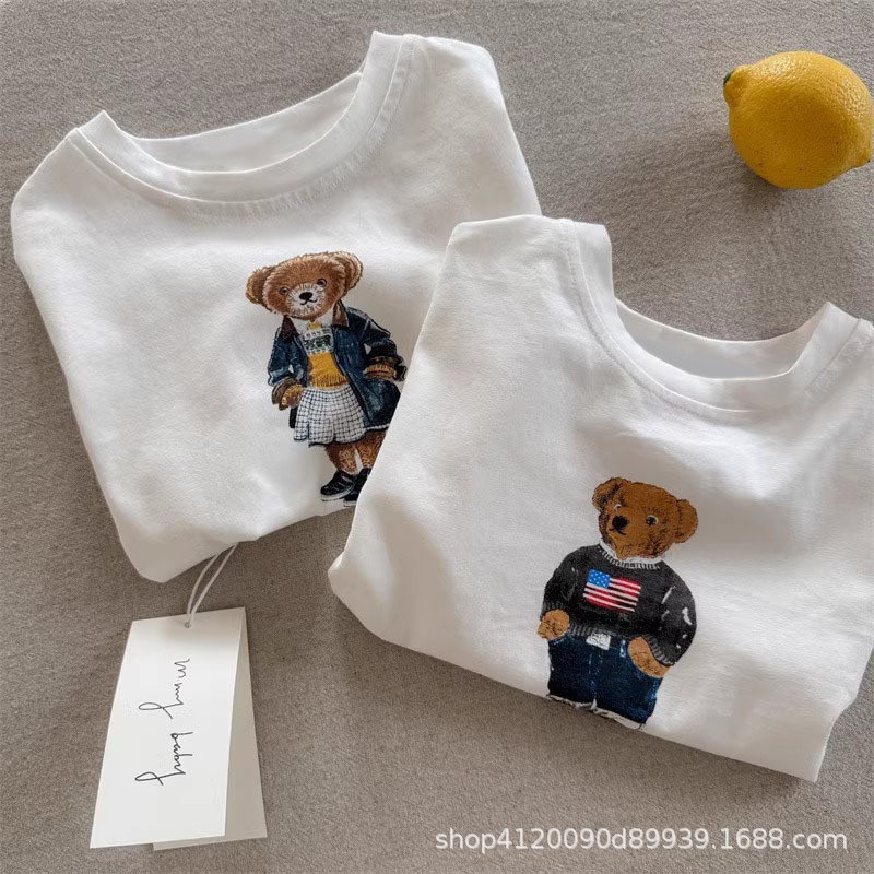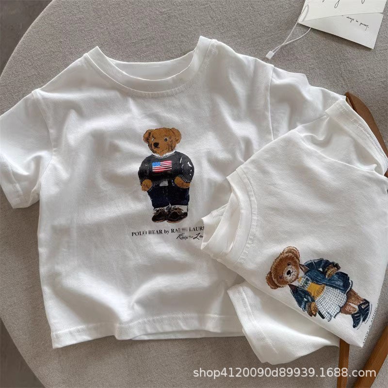 국경 간 코튼 걸스 티셔츠 반팔 여름 유행 브랜드 소년 만화 곰 탑 어린이 여름 아기 착용