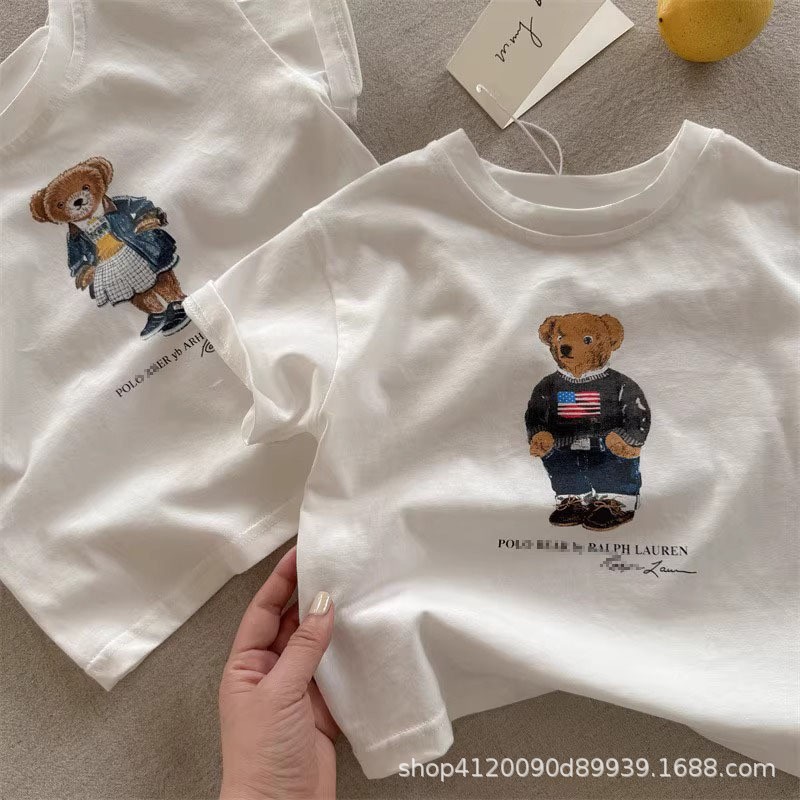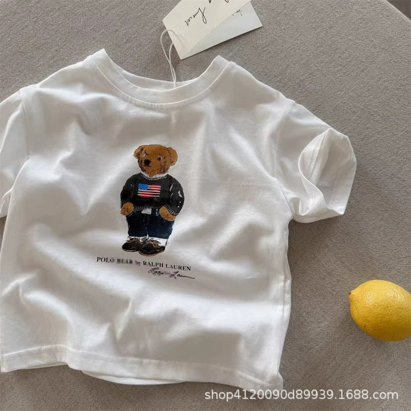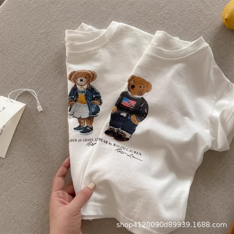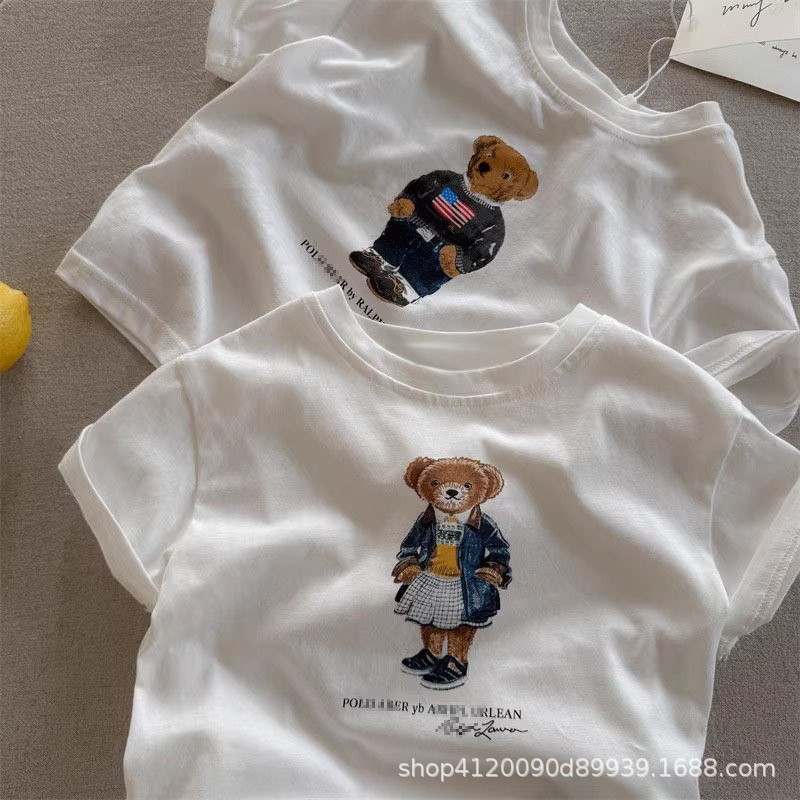 국경 간 코튼 걸스 티셔츠 반팔 여름 유행 브랜드 소년 만화 곰 탑 어린이 여름 아기 착용스토어 가기