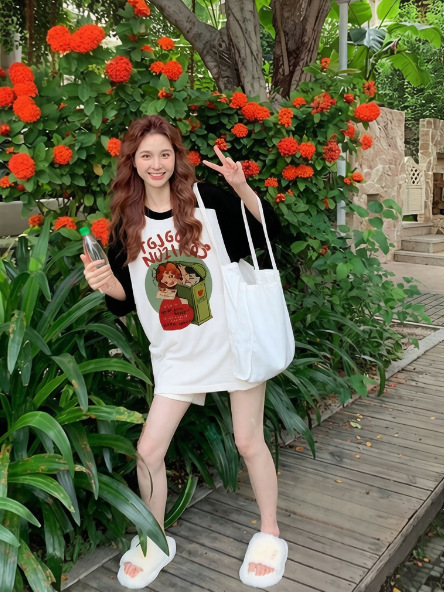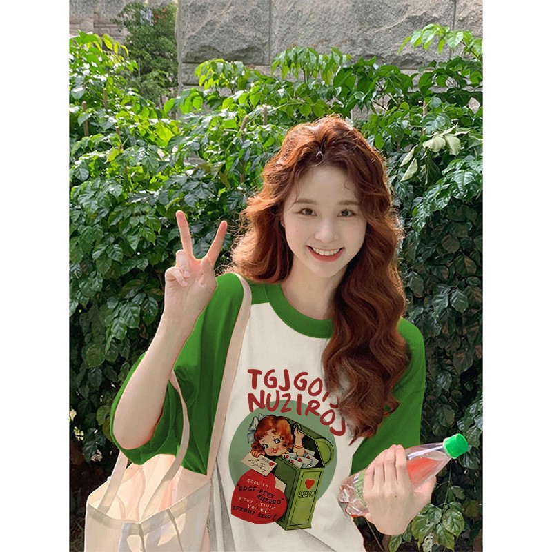 Raglan Cotton 반팔 티셔츠 여성 여름 도파민 착용 디자인 센스 틈새 귀여운 달콤한 루즈 탑스토어 가기