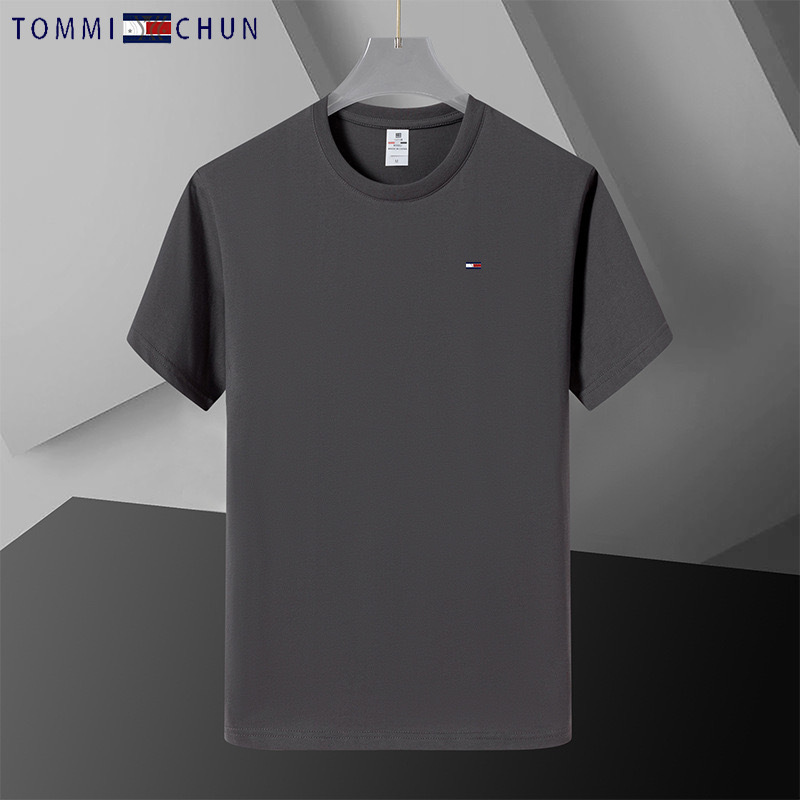 대외 무역 싱글 T0MMY 토미 남자 반팔 순면 라운드 넥 솔리드 컬러 티셔츠 여름 반소매 탑 조커스토어 가기