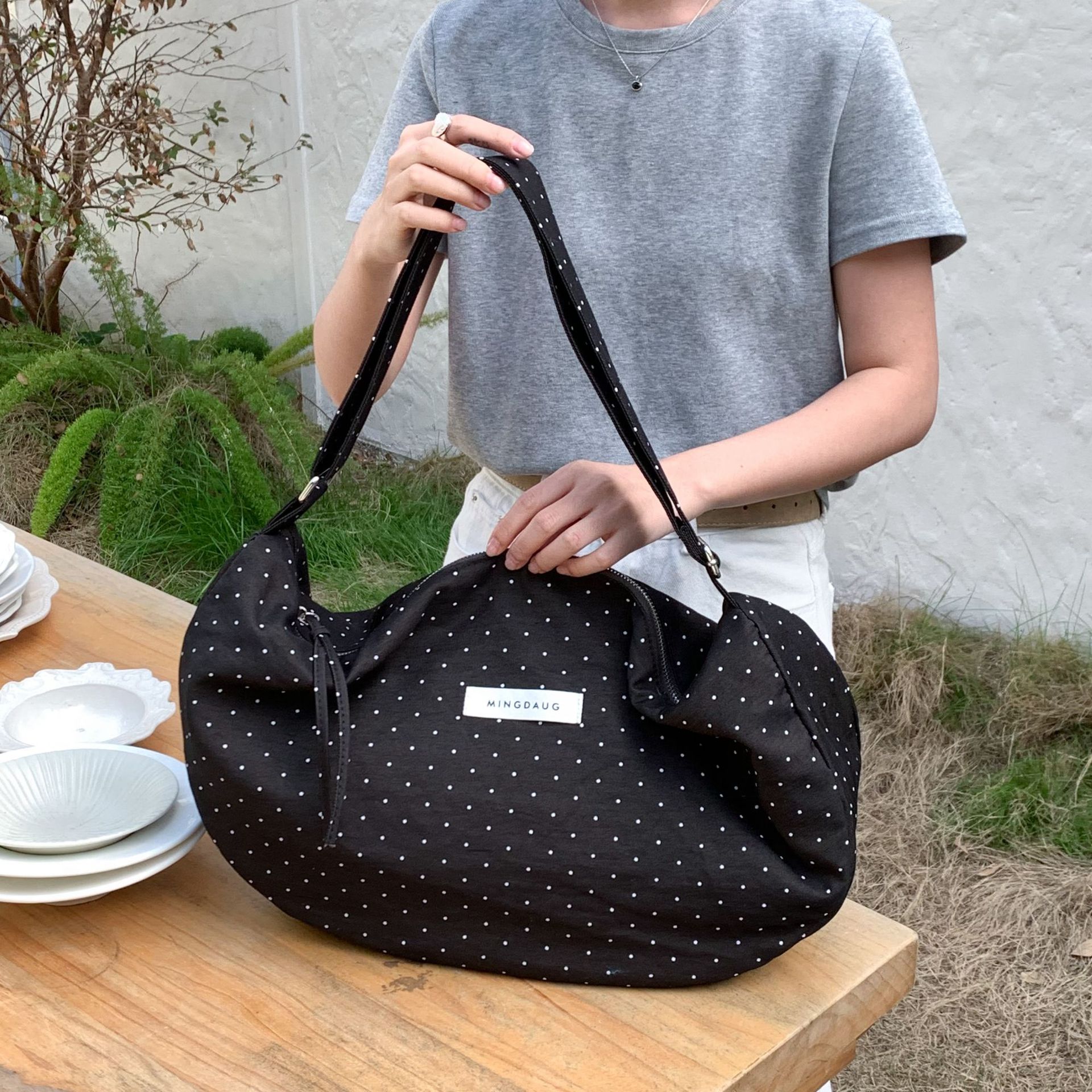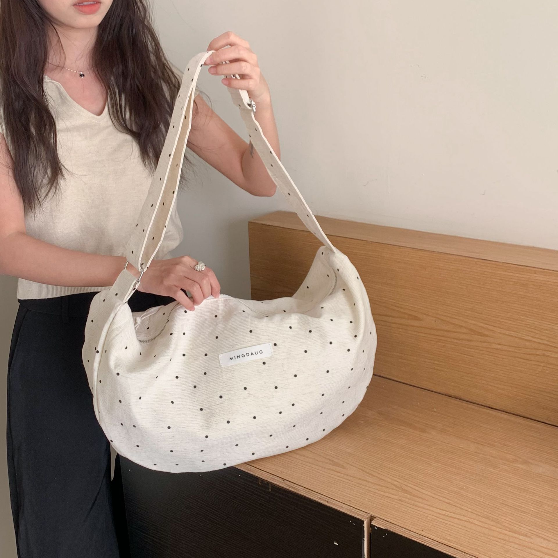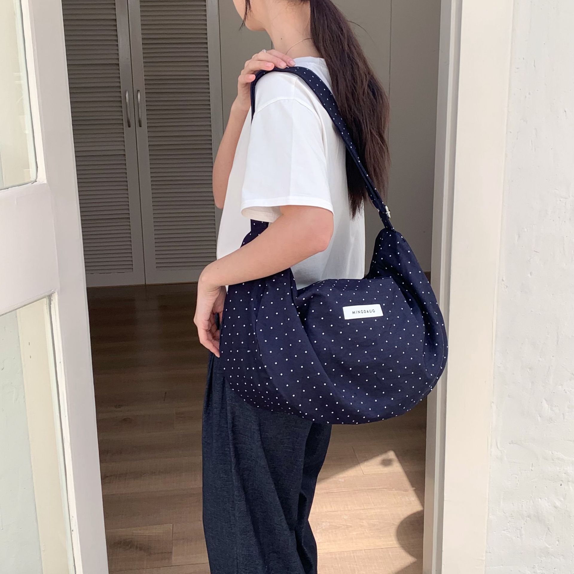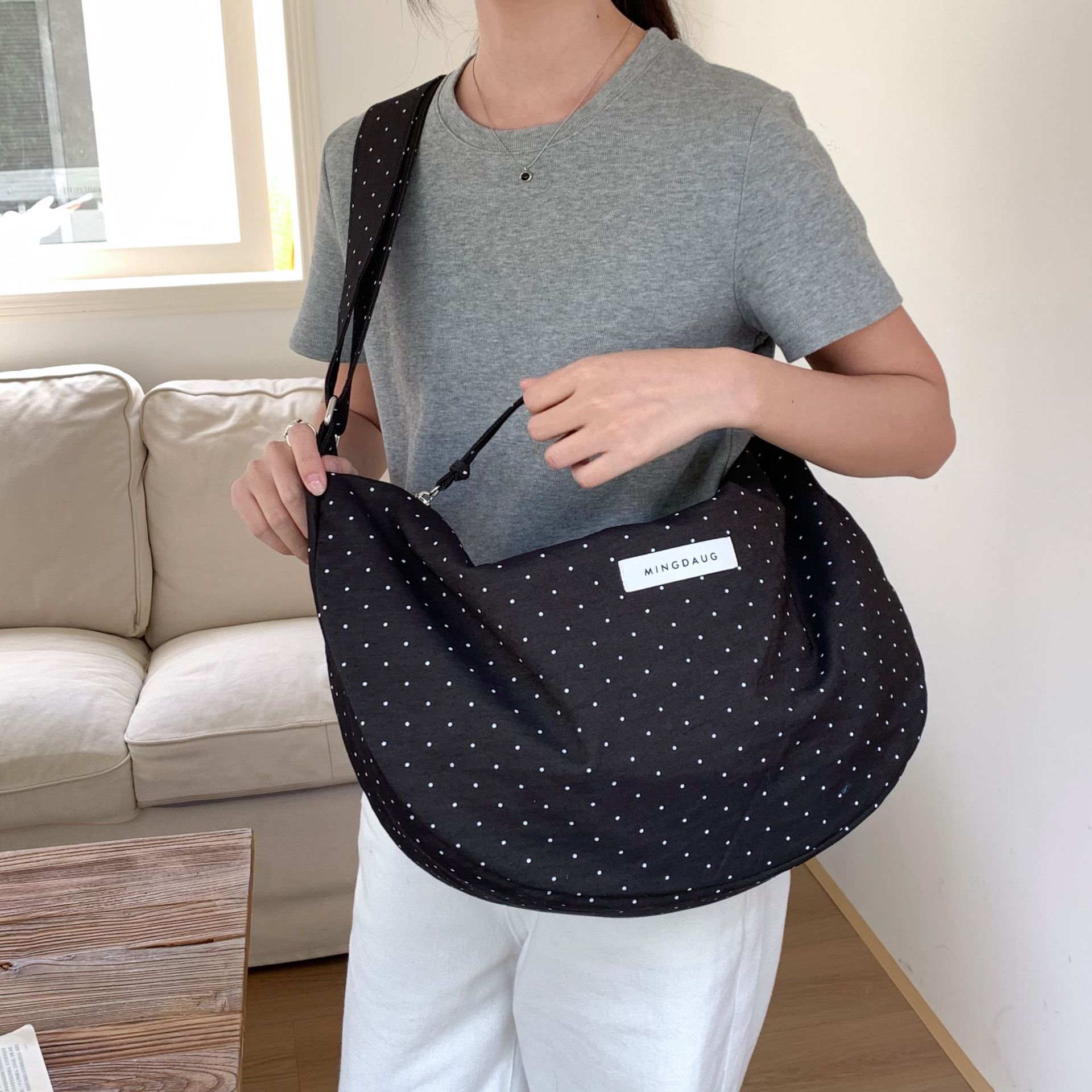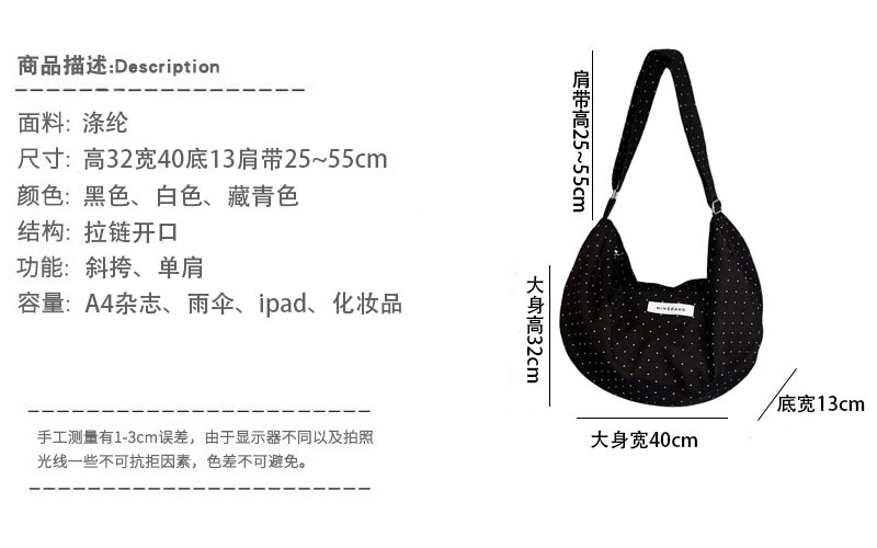 한국 스타일 유행 웨이브 포인트 대용량 만두 백 간단한 올 매치 통근 경량 휴대용 신선한 어깨 가방스토어 가기