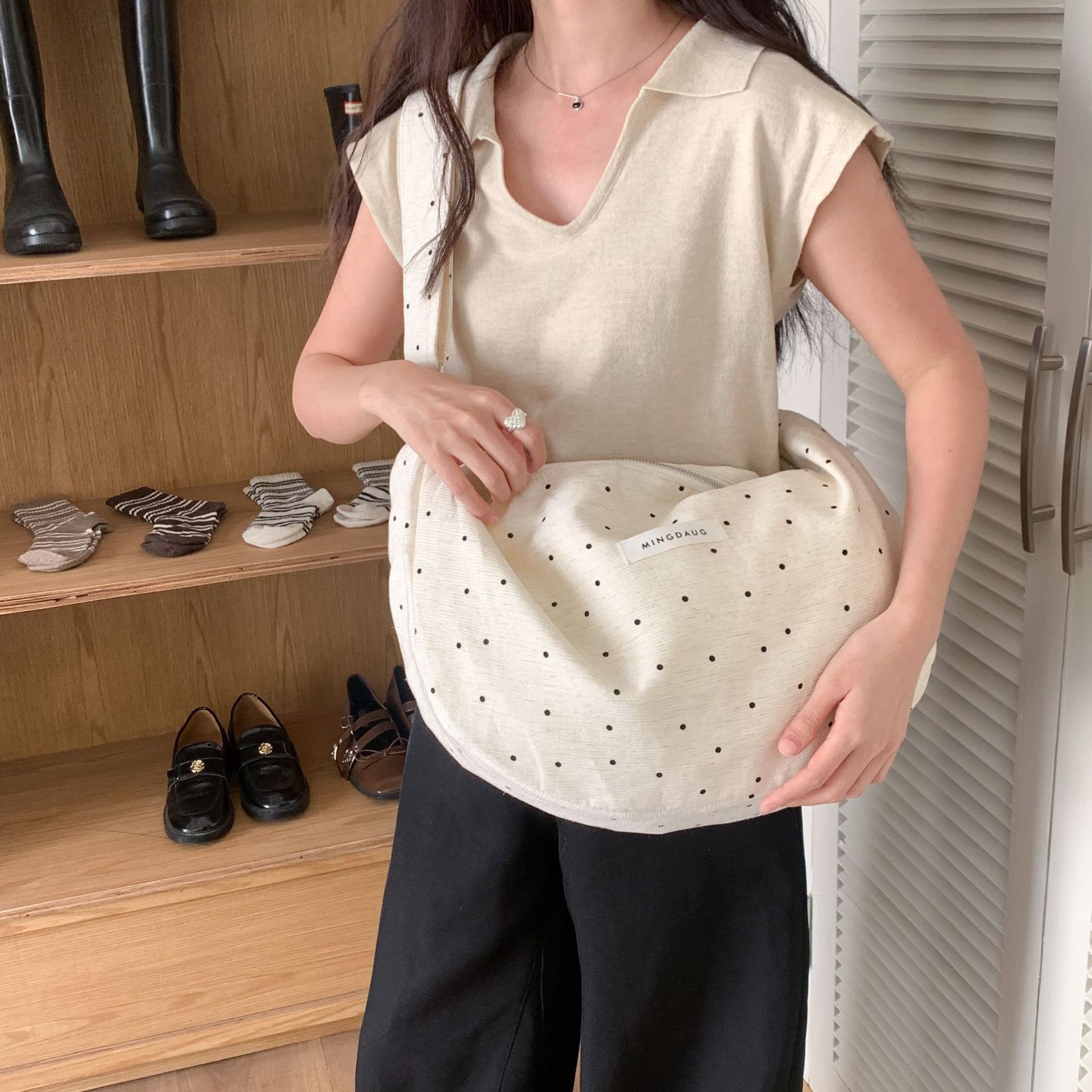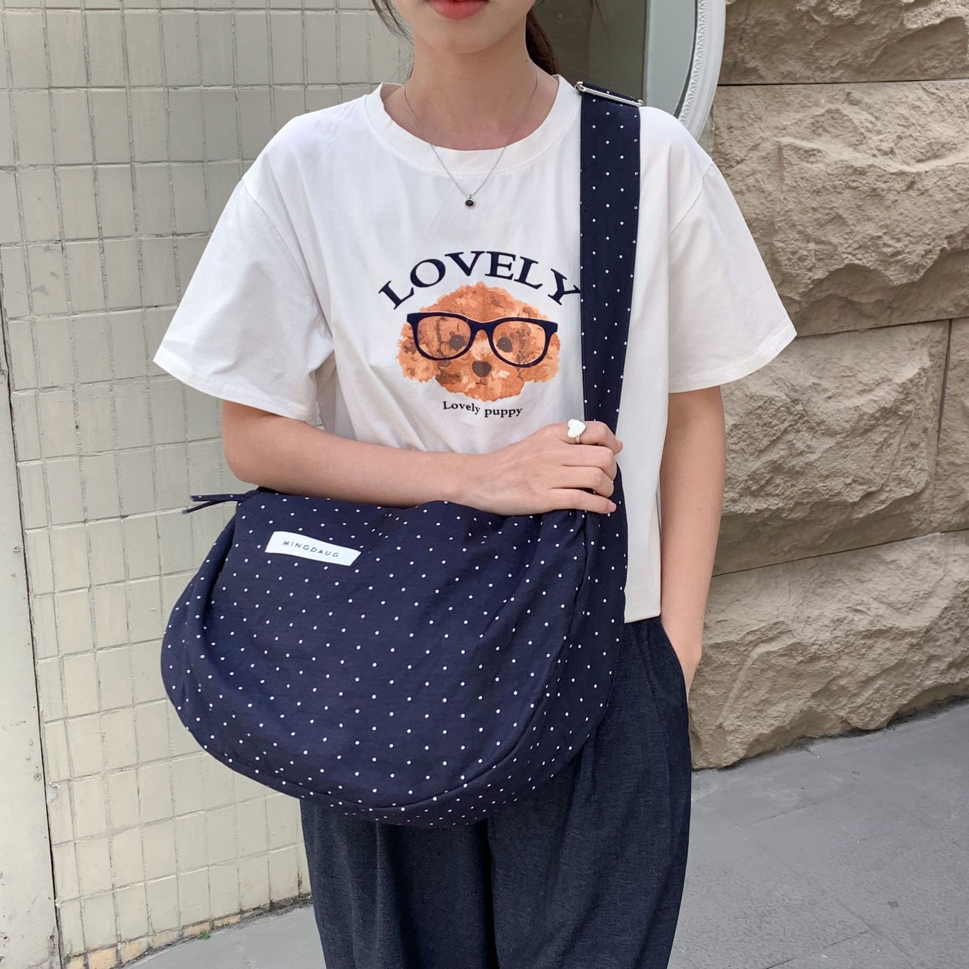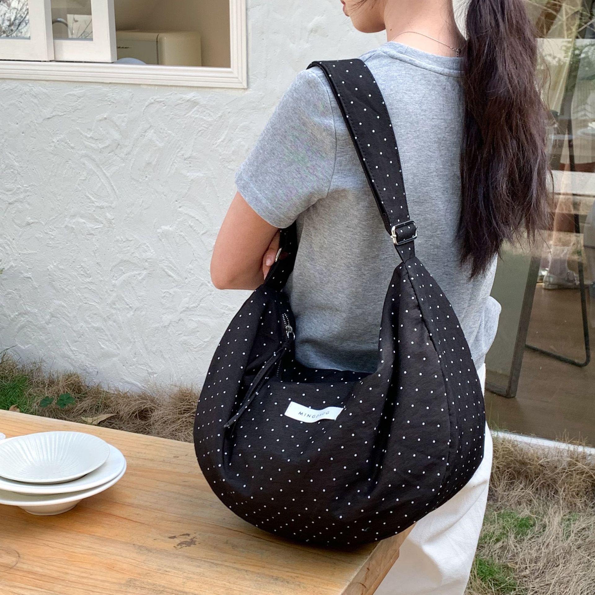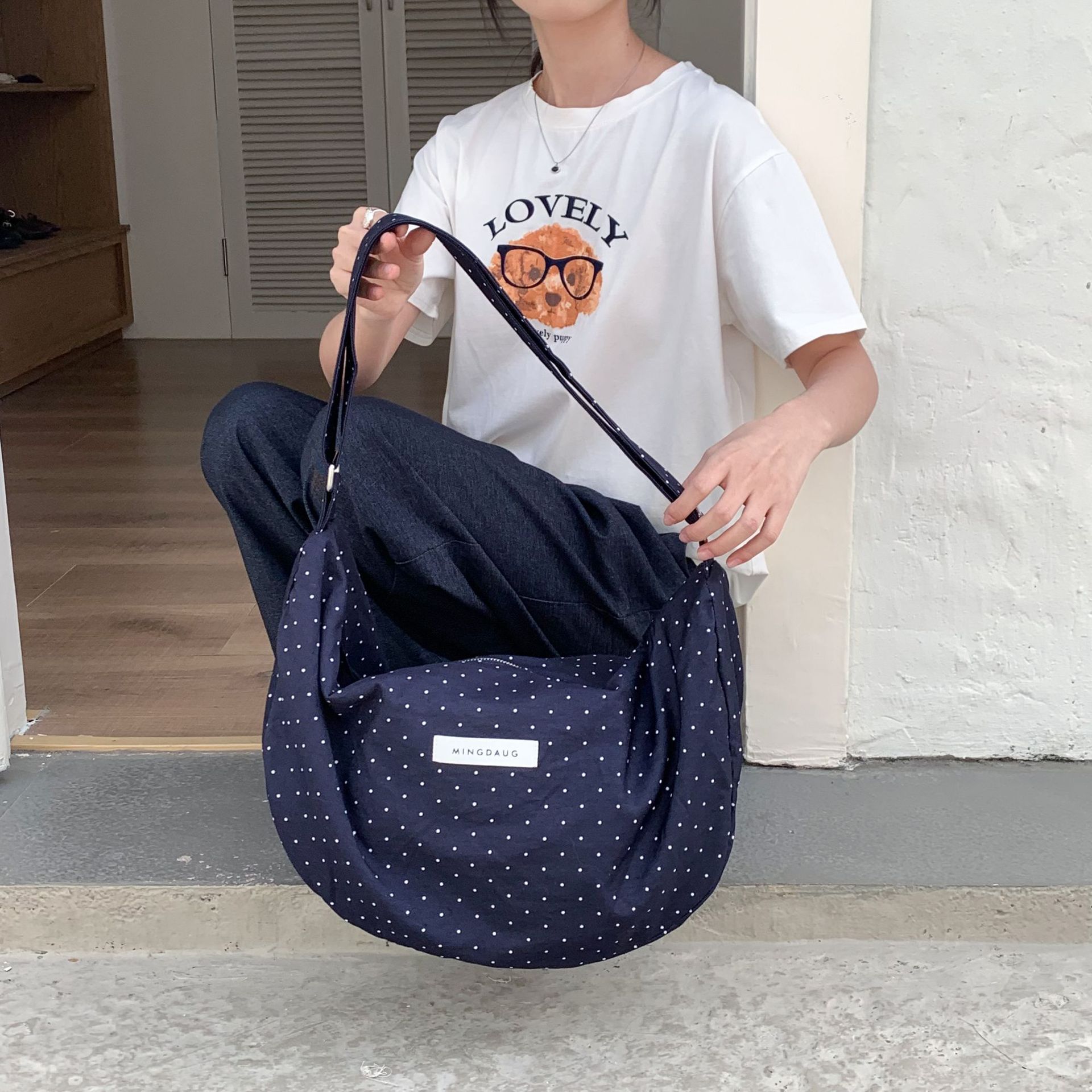 한국 스타일 유행 웨이브 포인트 대용량 만두 백 간단한 올 매치 통근 경량 휴대용 신선한 어깨 가방스토어 가기