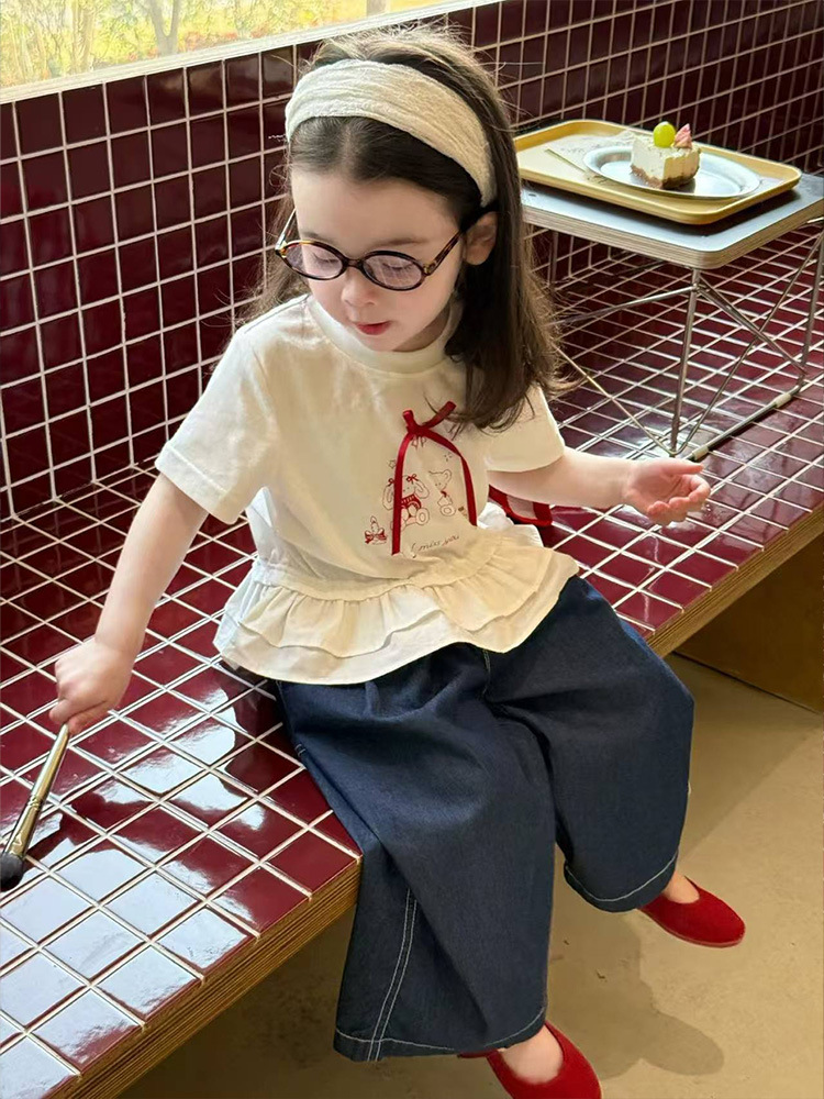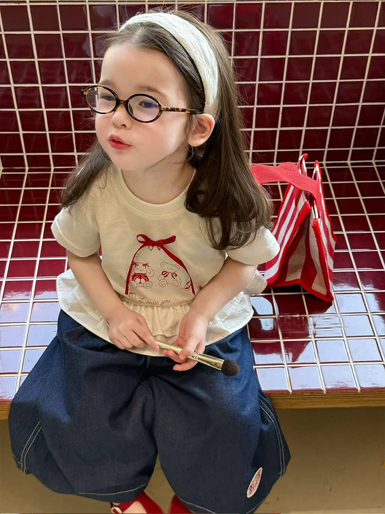 여자 티셔츠 반팔 2025 새로운 여름 새로운 서양식 패션 아기 소녀 어린이 화이트 활 T 탑스토어 가기