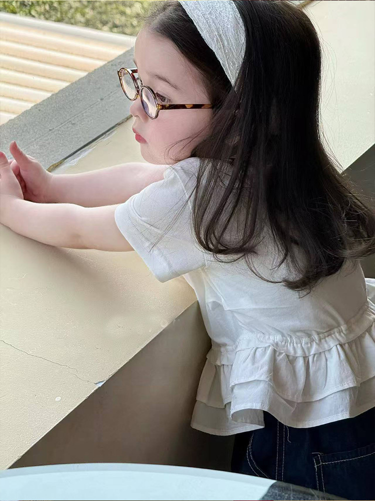여자 티셔츠 반팔 2025 새로운 여름 새로운 서양식 패션 아기 소녀 어린이 화이트 활 T 탑