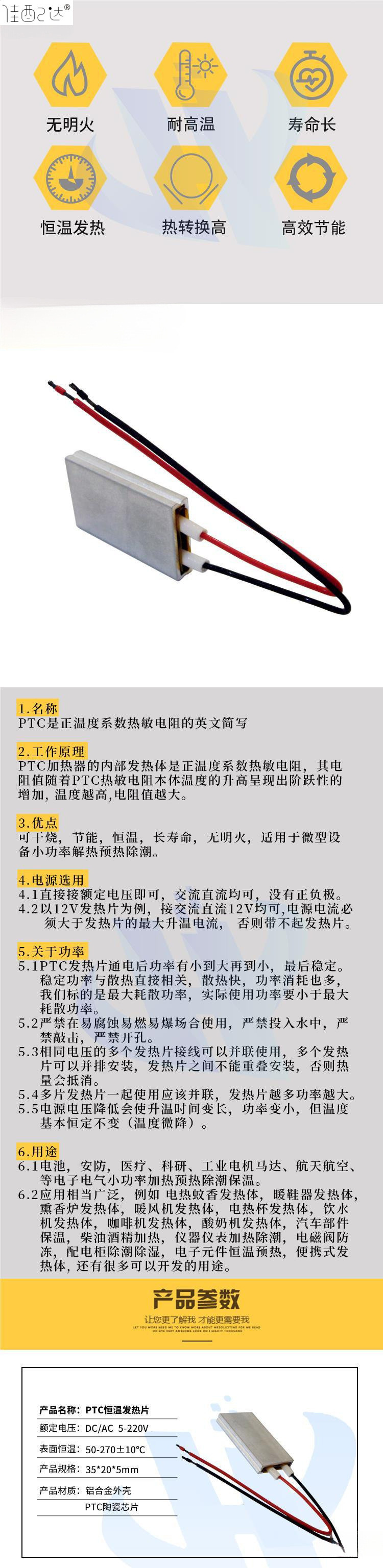 35*20mm 알루미늄 쉘 히터 PTC 일정한 온도 히터 가열 시트 전기 가열 시트 70-270 ℃